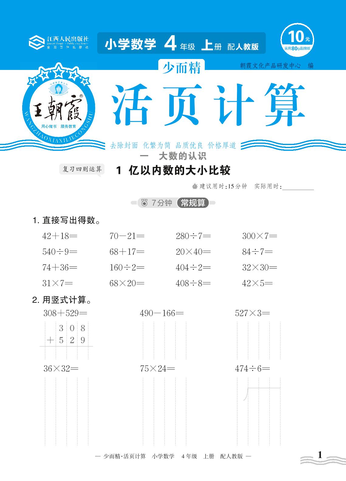 2023上册四年级数学人教版 一 大数的认识——1 亿以内数的大小比较