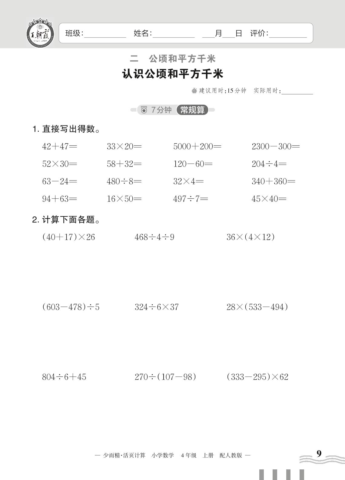 2023上册四年级数学人教版 二 公顷和平方千米——认识公顷和平方千米