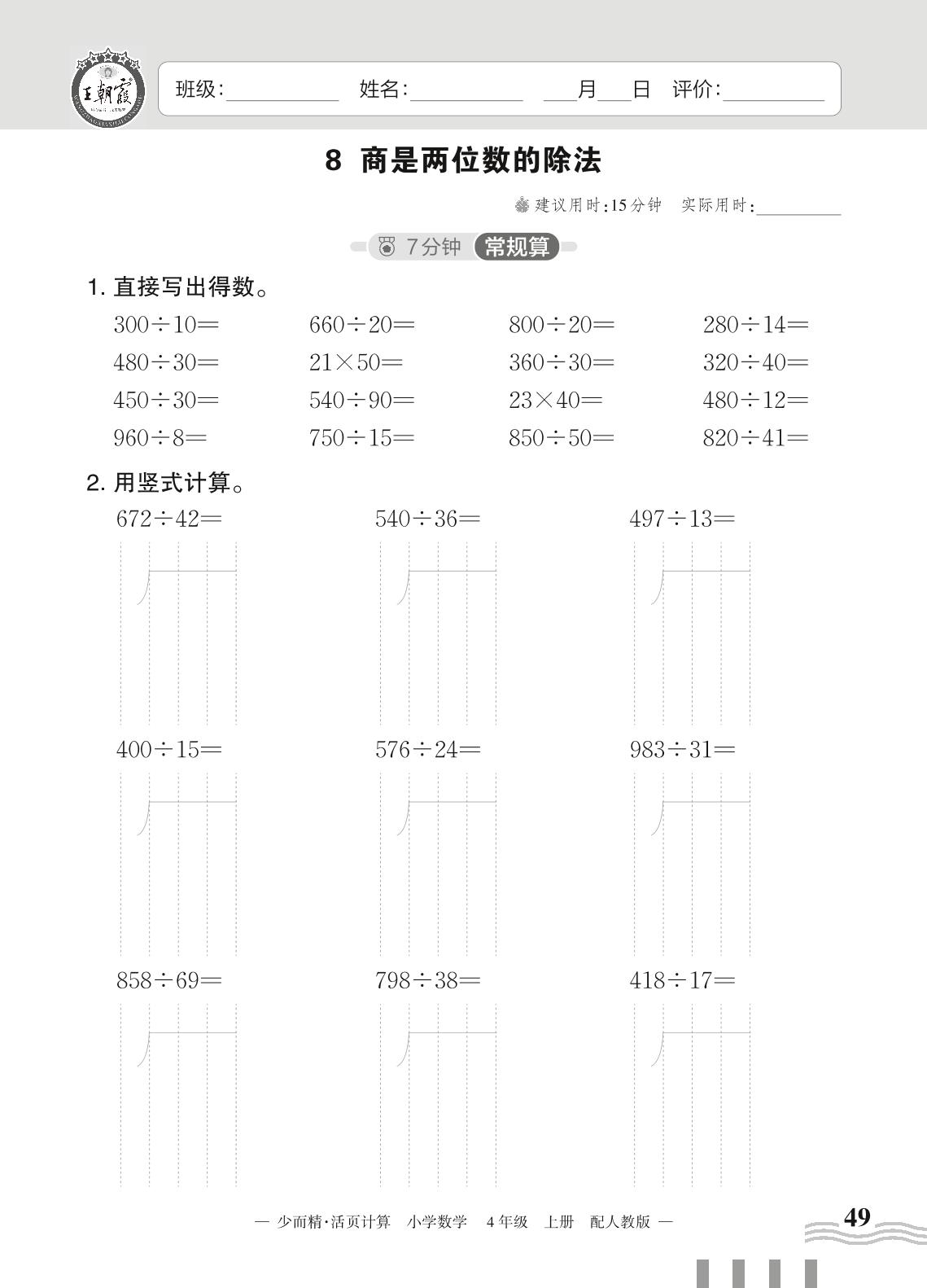 2023上册四年级数学人教版 六 除数是两位数的除法——8 商是两位数的除法