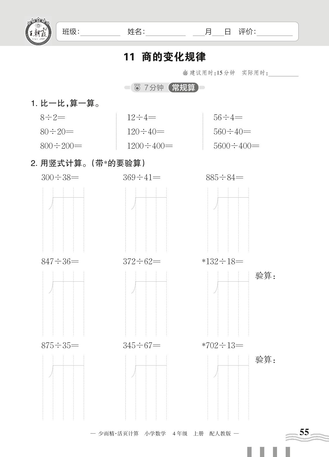 2023上册四年级数学人教版 六 除数是两位数的除法——11 商的变化规律