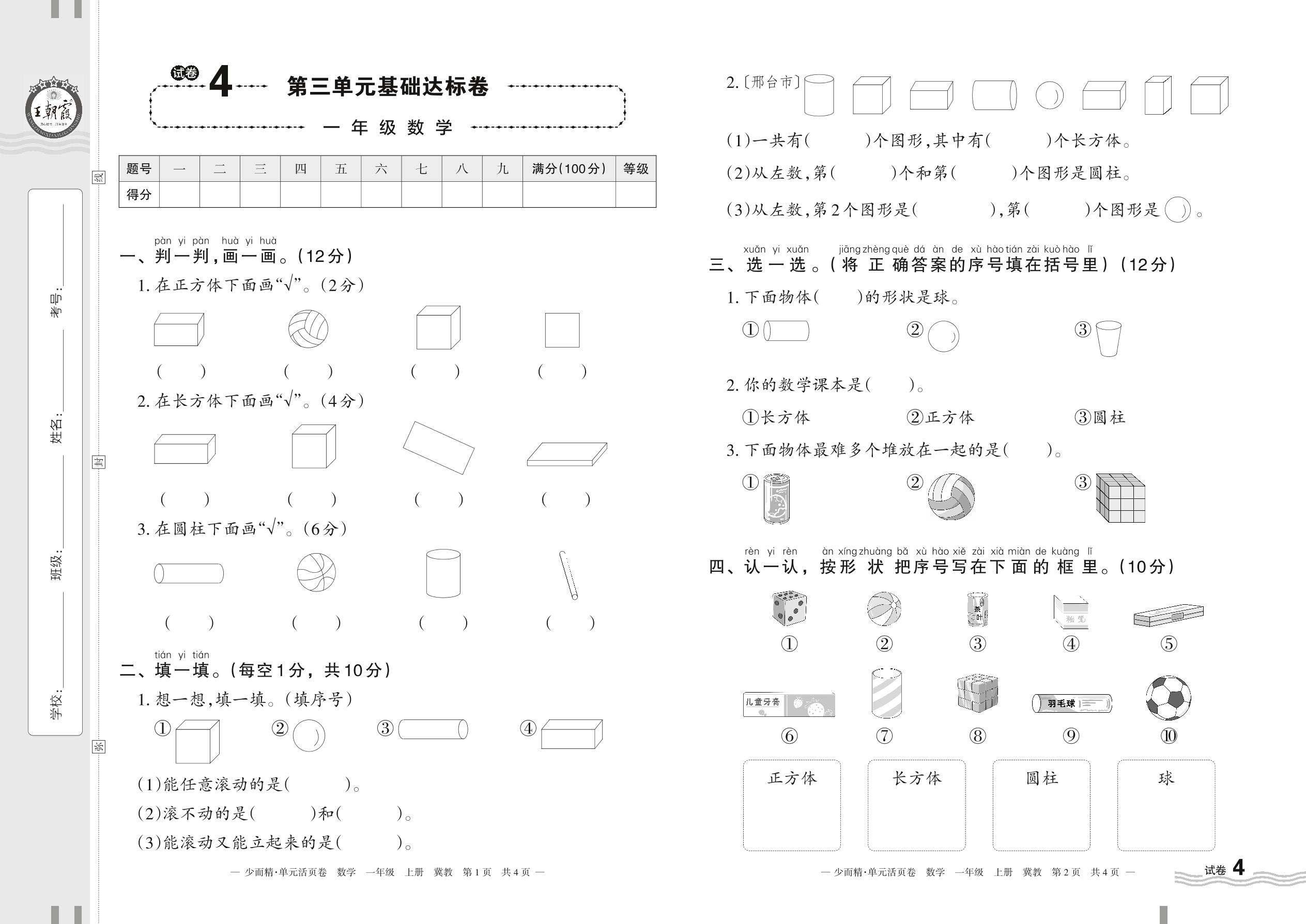2023上册一年级数学冀教版 试卷4 第三单元基础达标卷