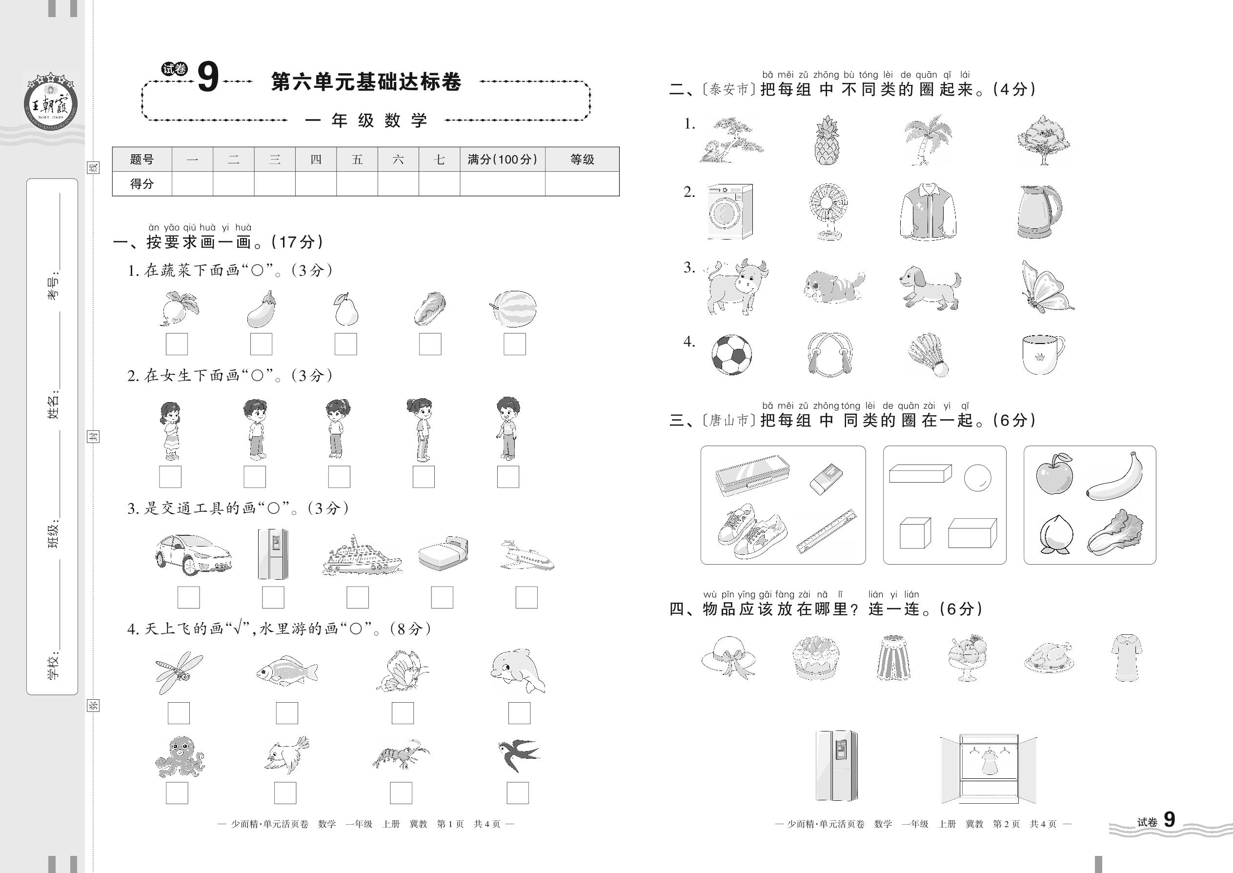 2023上册一年级数学冀教版 试卷9 第六单元基础达标卷