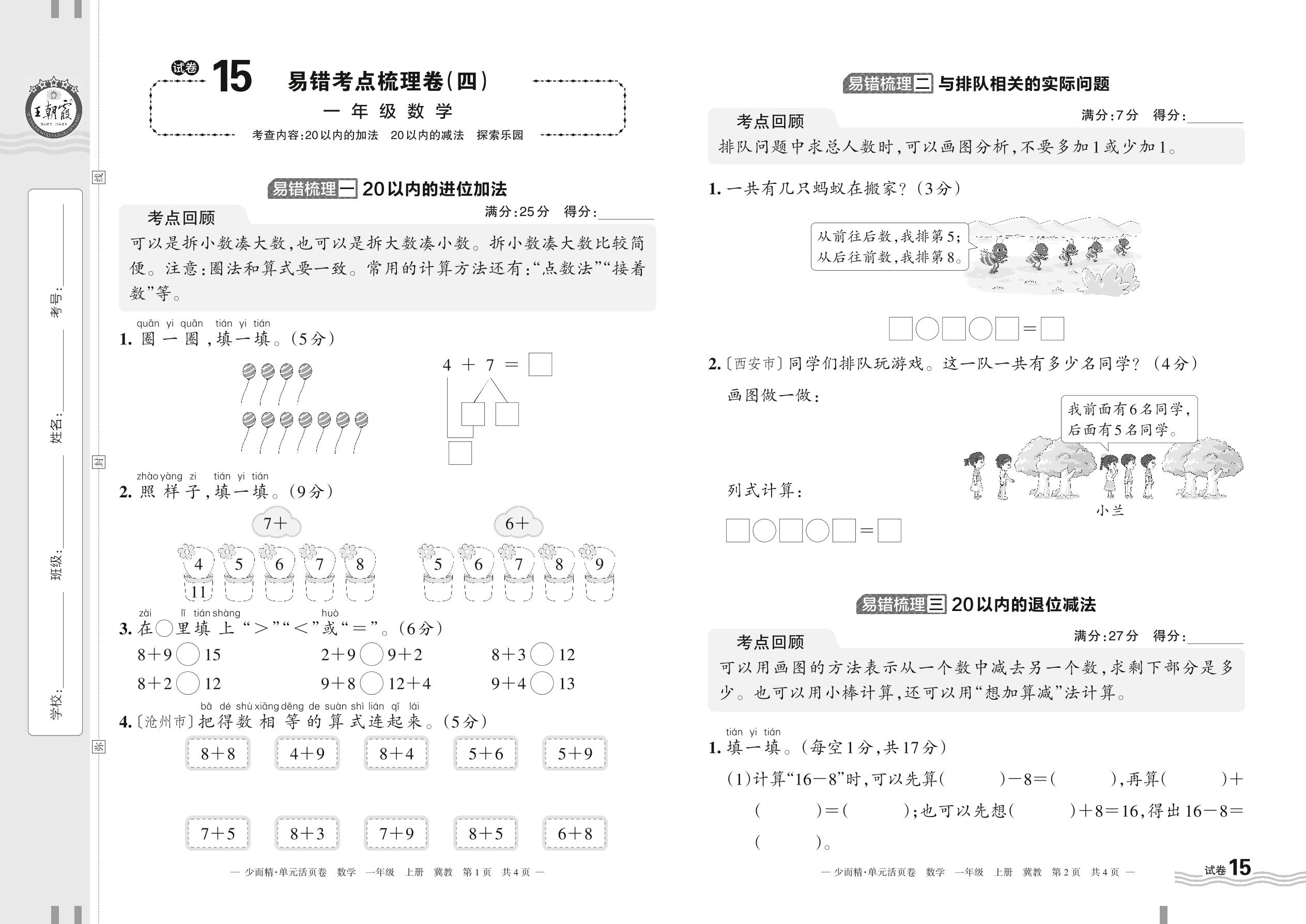 2023上册一年级数学冀教版 试卷15 易错考点梳理卷(四)