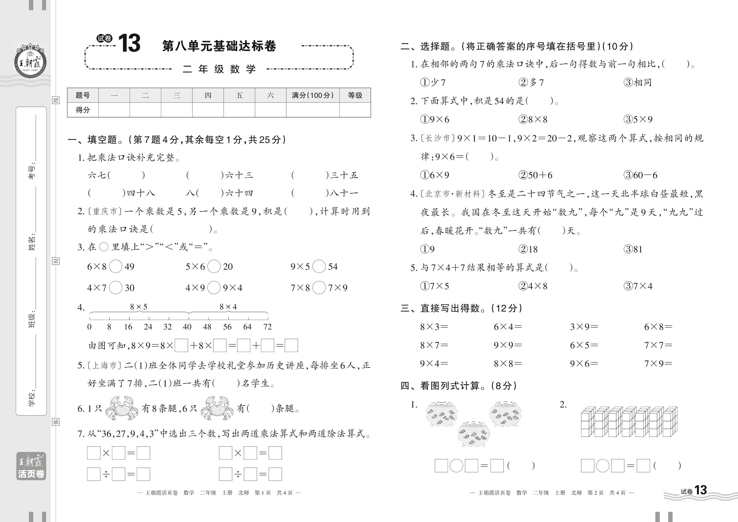 2023上册二年级数学北师版 试卷13 第八单元基础达标卷