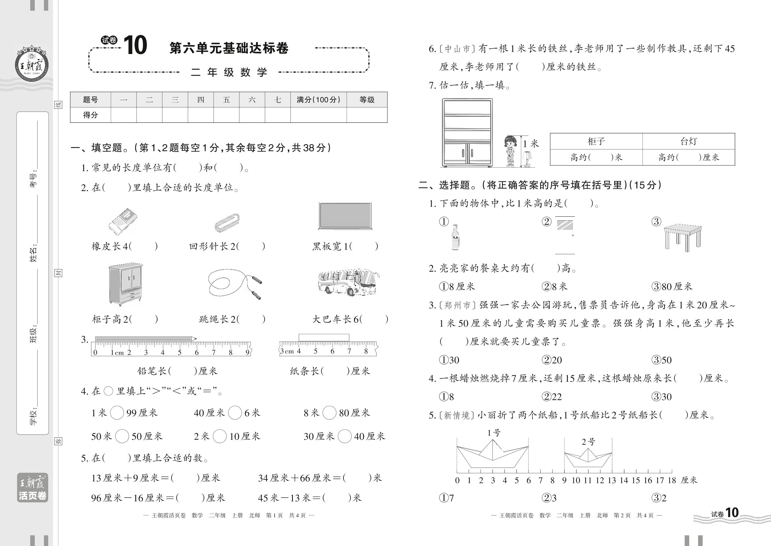 2023上册二年级数学北师版 试卷10 第六单元基础达标卷