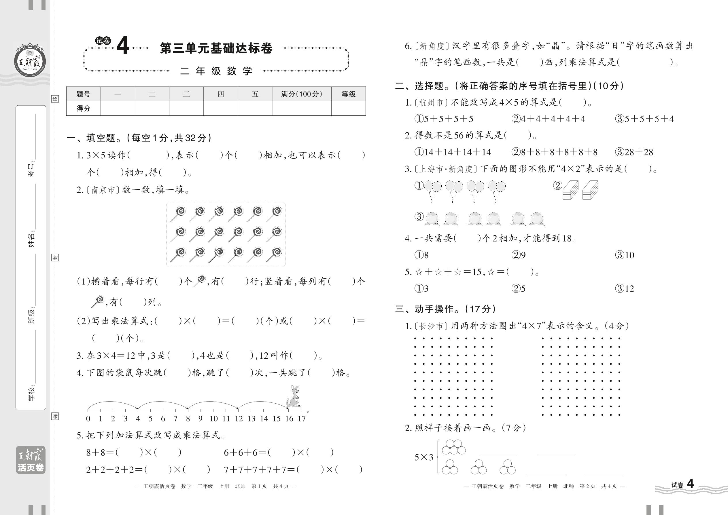 2023上册二年级数学北师版 试卷4 第三单元基础达标卷