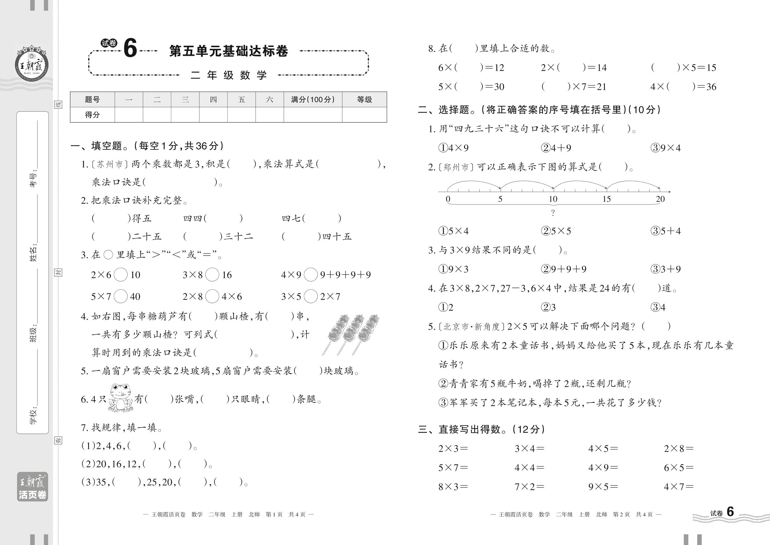 2023上册二年级数学北师版 试卷6 第五单元基础达标卷