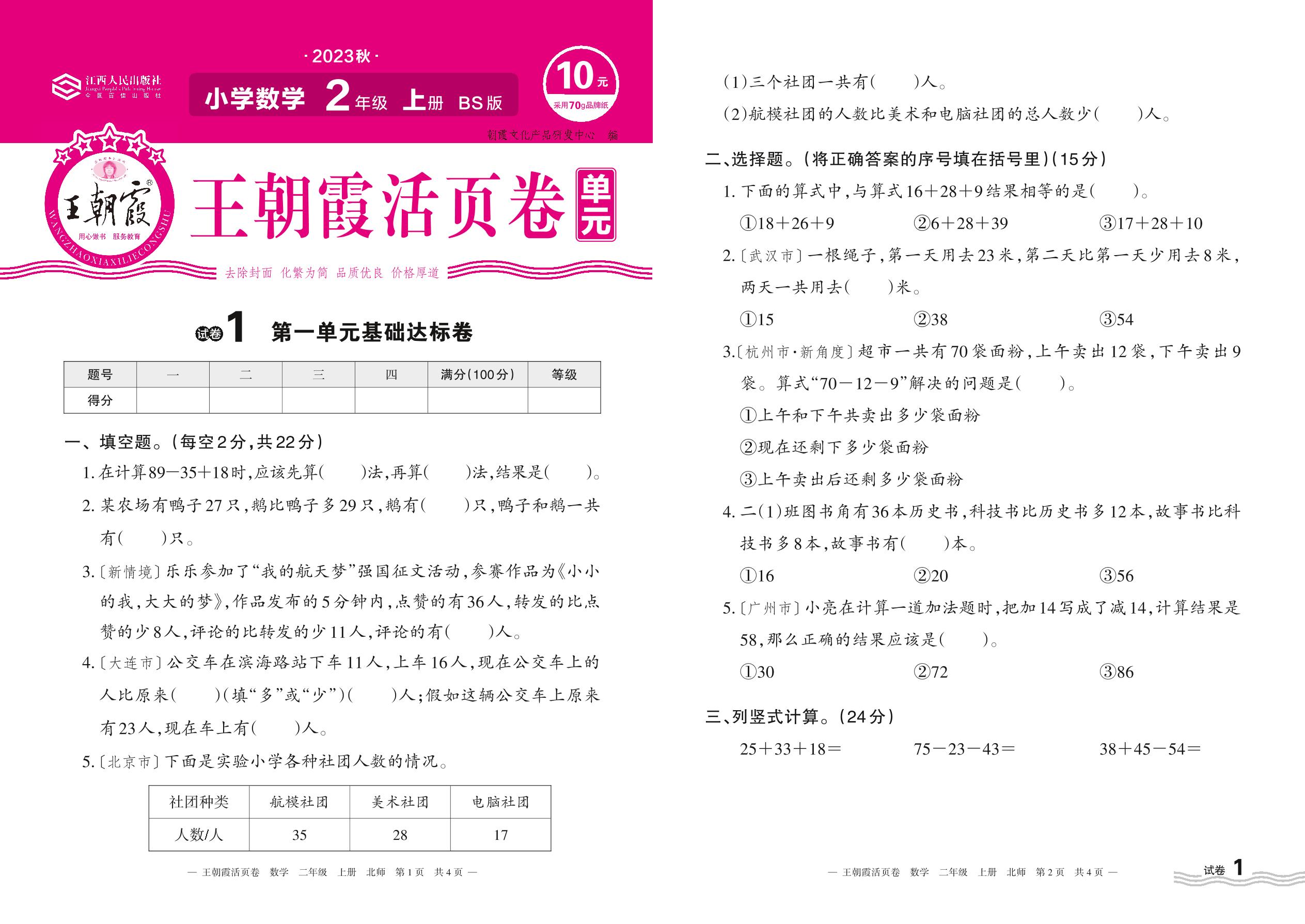 2023上册二年级数学北师版 试卷1 第一单元基础达标卷