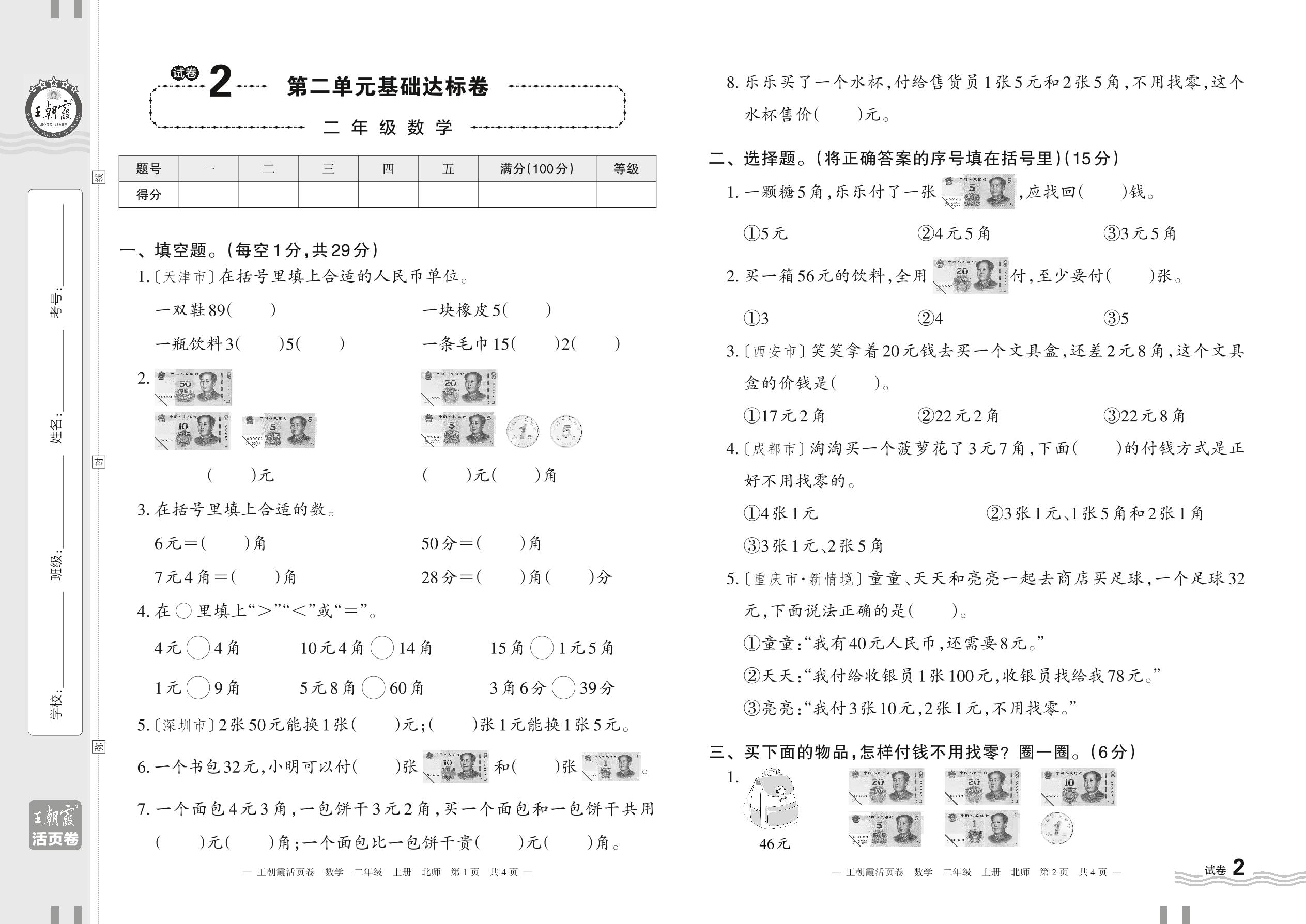 2023上册二年级数学北师版 试卷2 第二单元基础达标卷