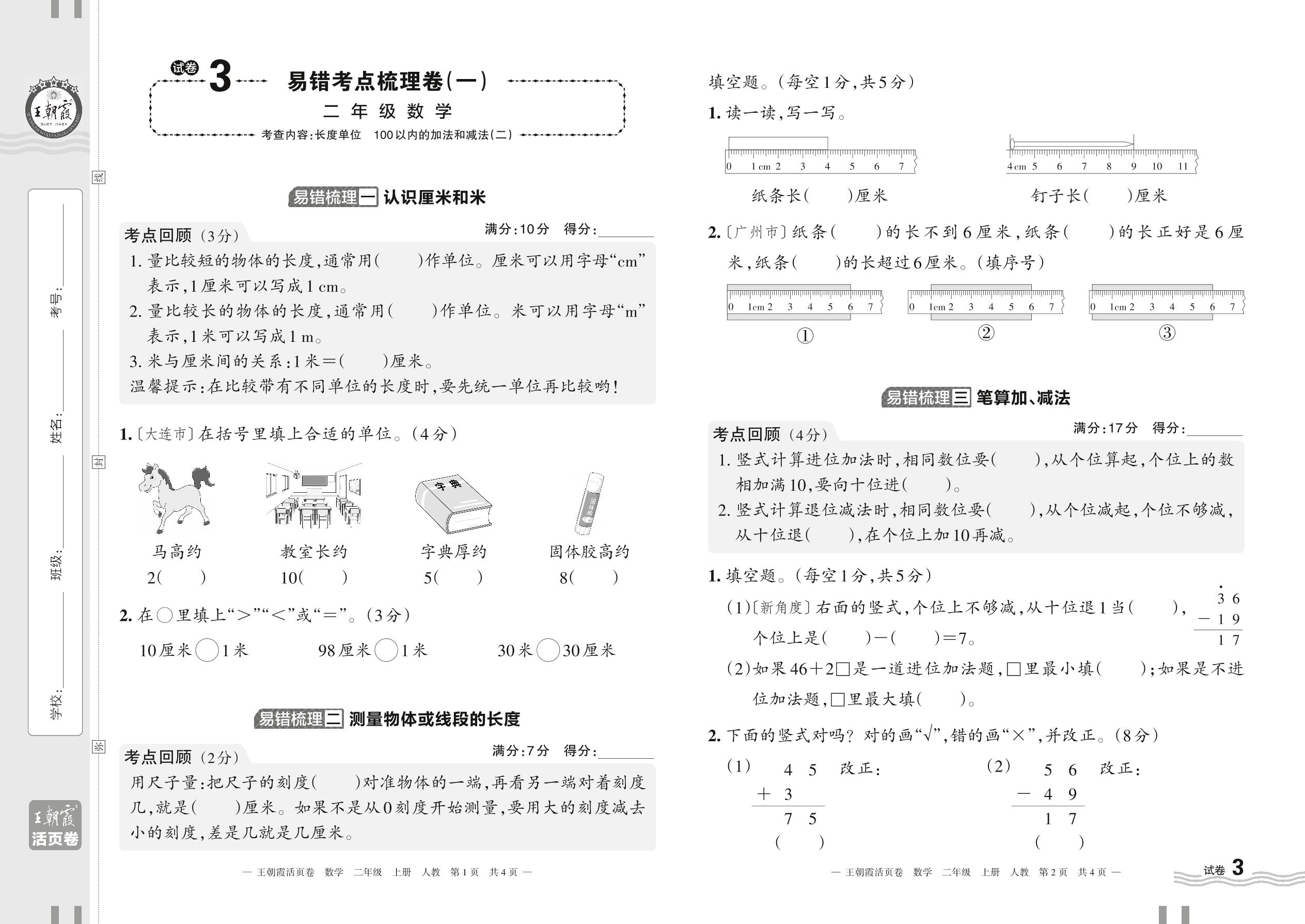 2023上册二年级数学人教版 试卷3 易错考点梳理卷(一)