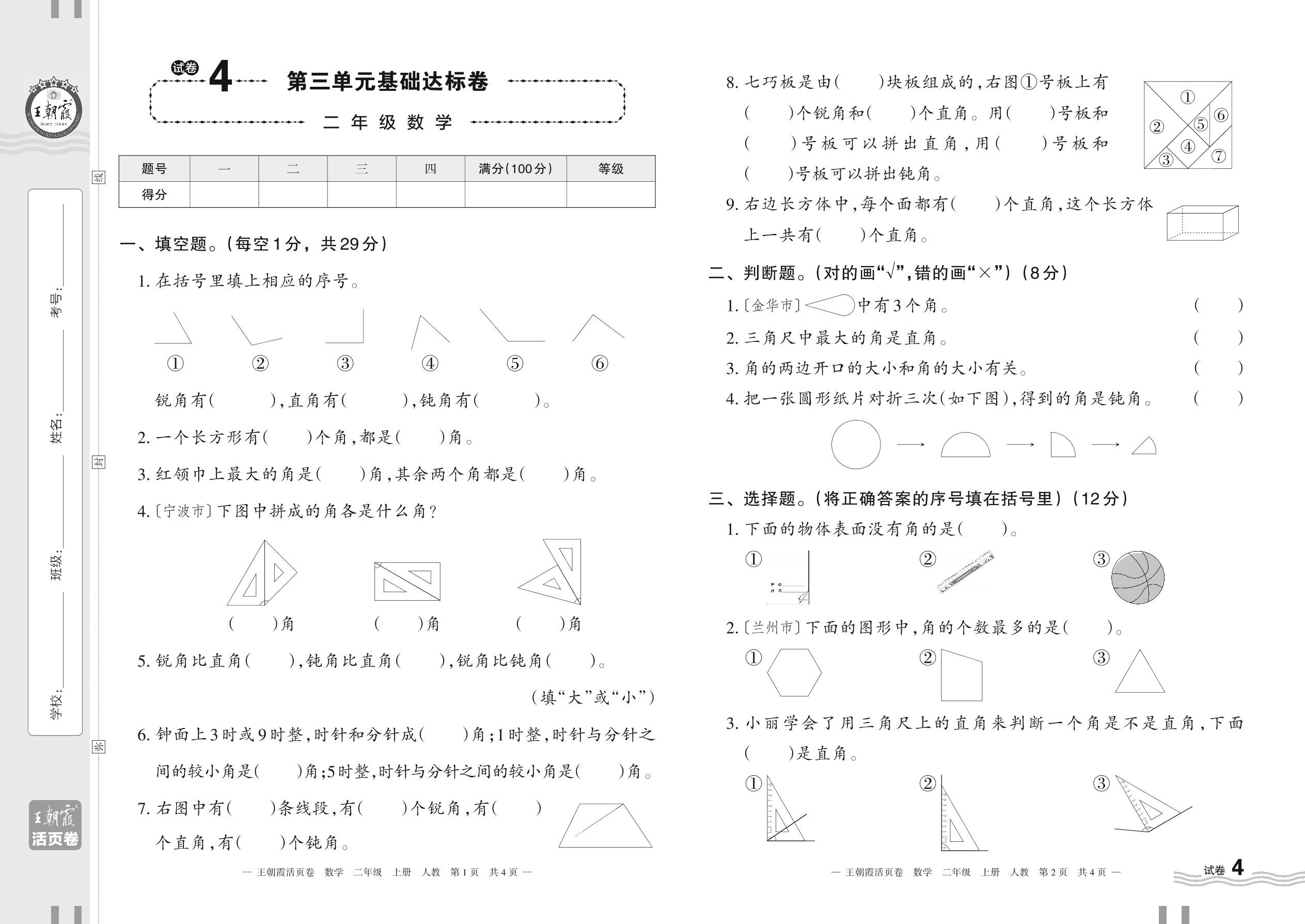 2023上册二年级数学人教版 试卷4 第三单元基础达标卷