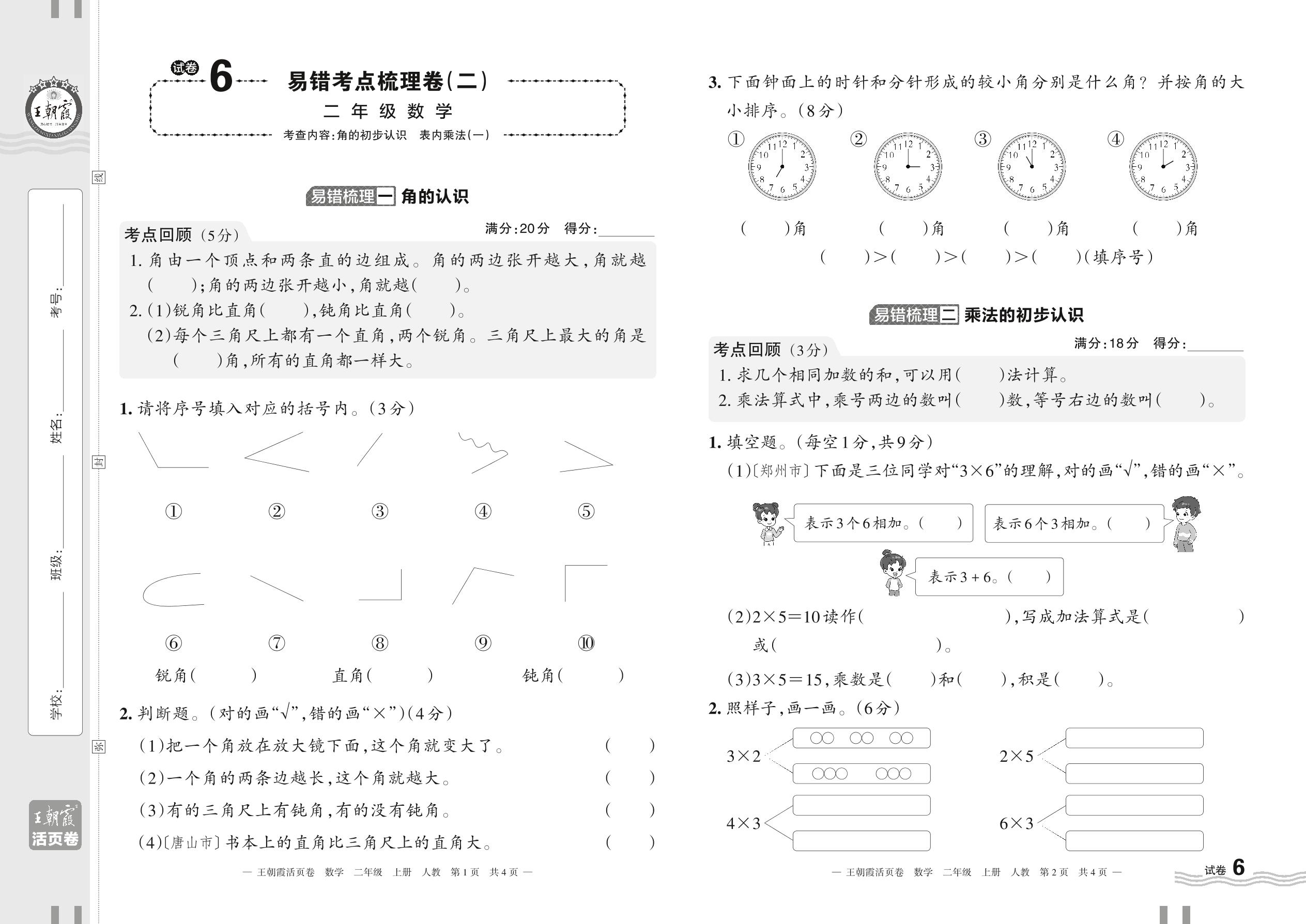 2023上册二年级数学人教版 试卷6 易错考点梳理卷(二)