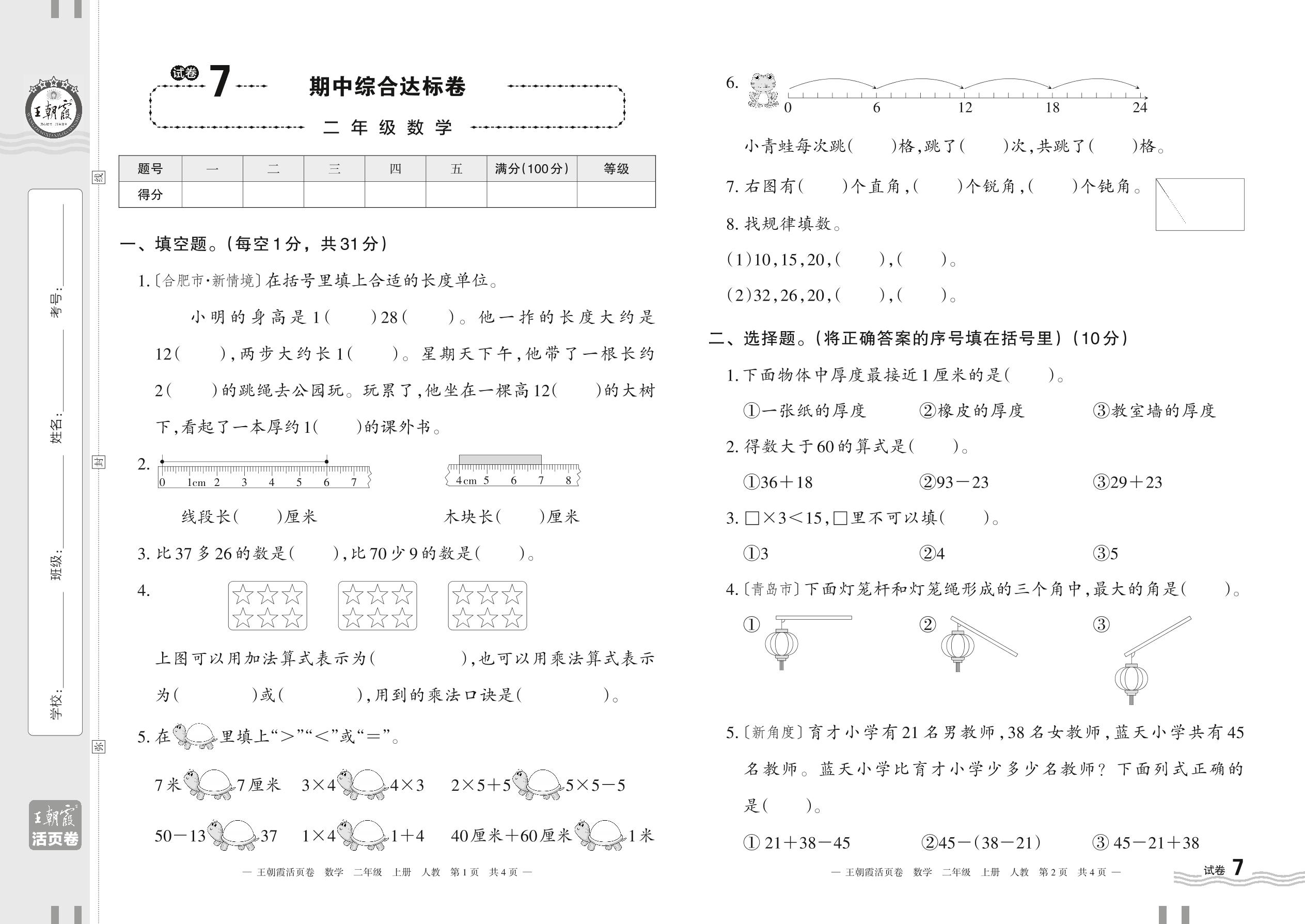 2023上册二年级数学人教版 试卷7 期中综合达标卷