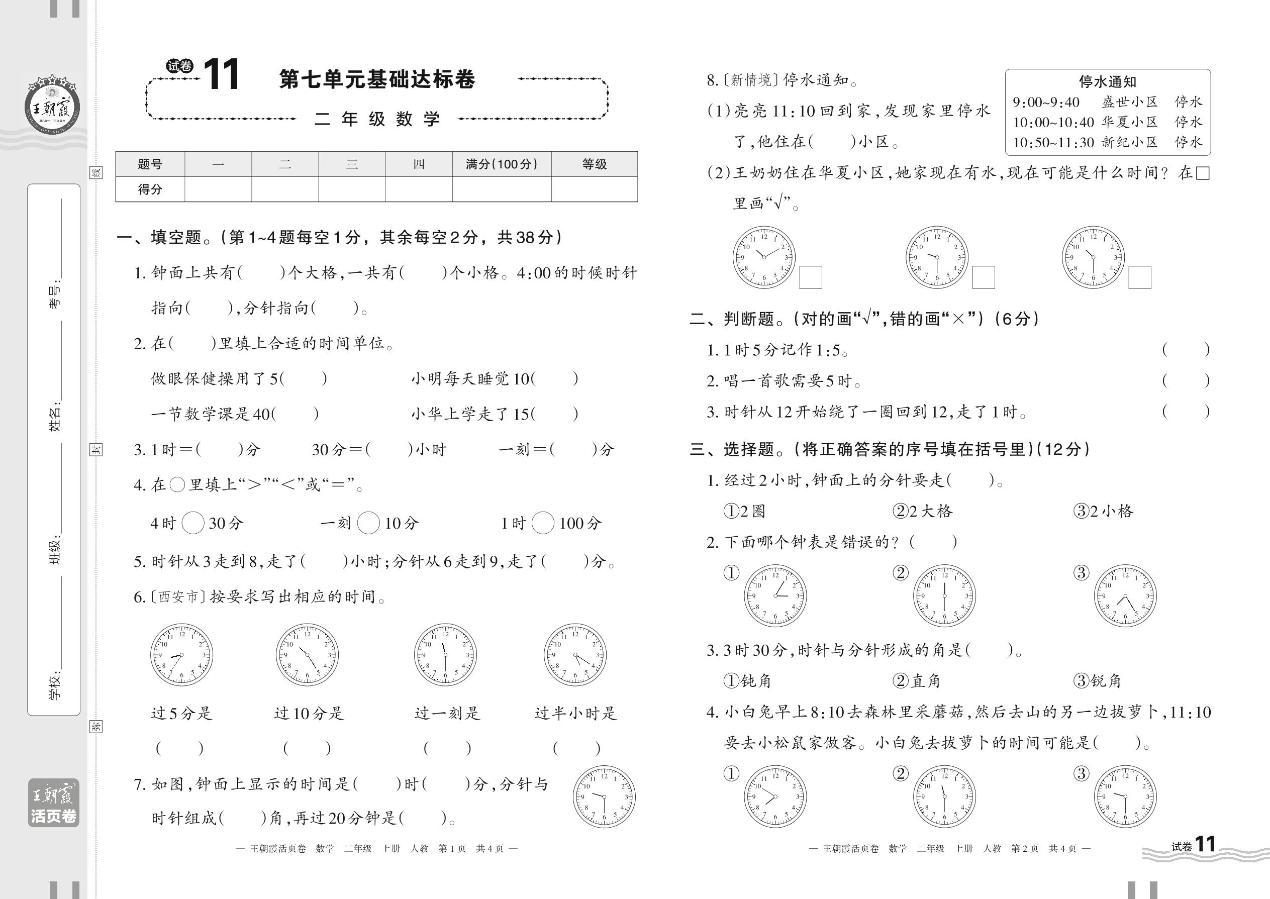 2023上册二年级数学人教版 试卷11 第七单元基础达标卷