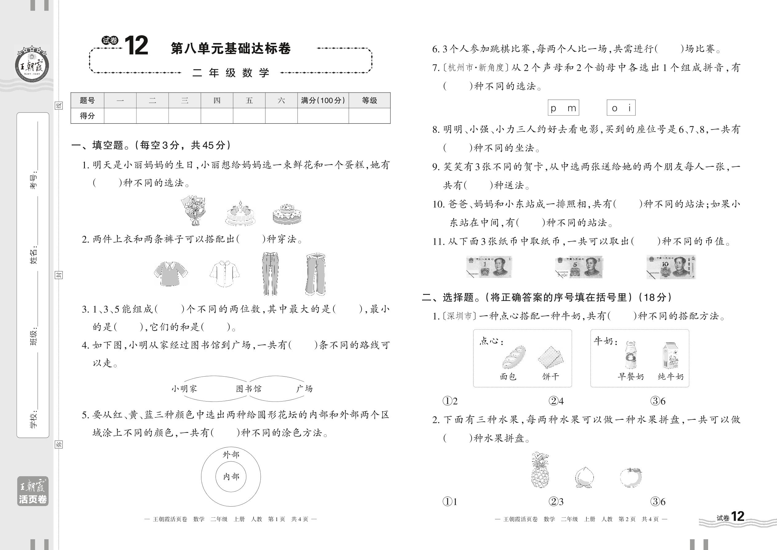 2023上册二年级数学人教版 试卷12 第八单元基础达标卷