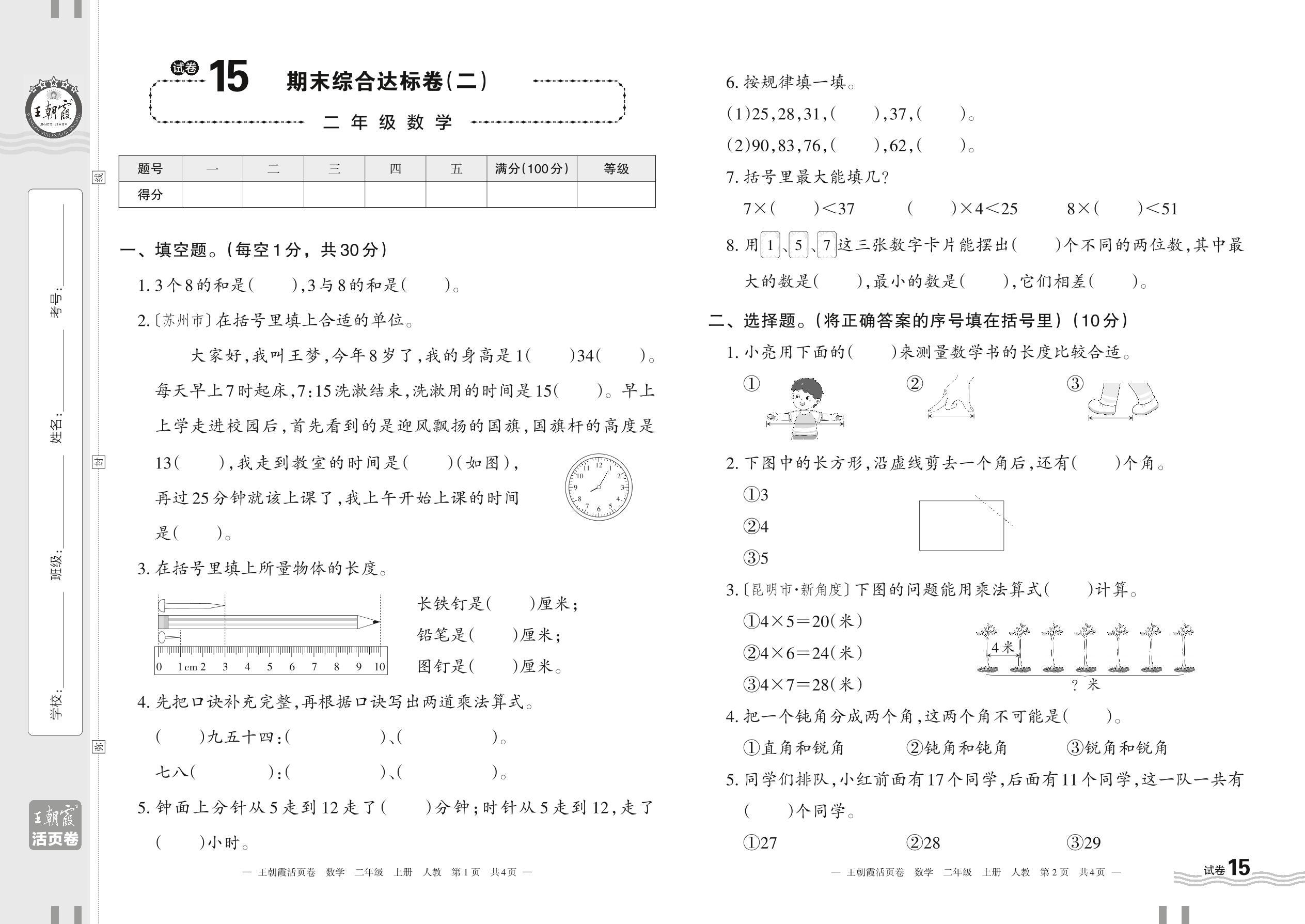 2023上册二年级数学人教版 试卷15 期末综合达标卷(二)