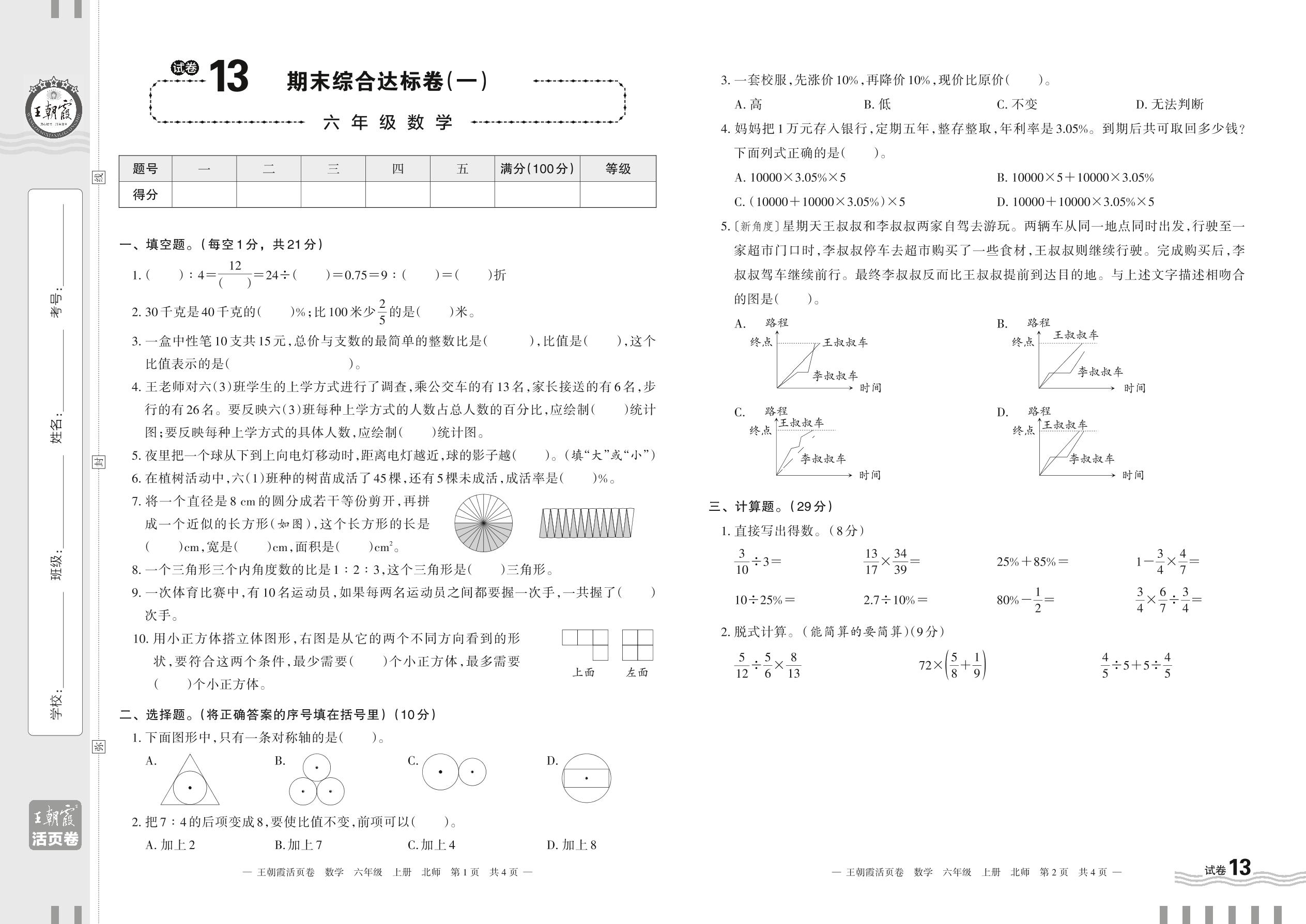 2023上册六年级数学北师版 试卷13 期末综合达标卷(一)