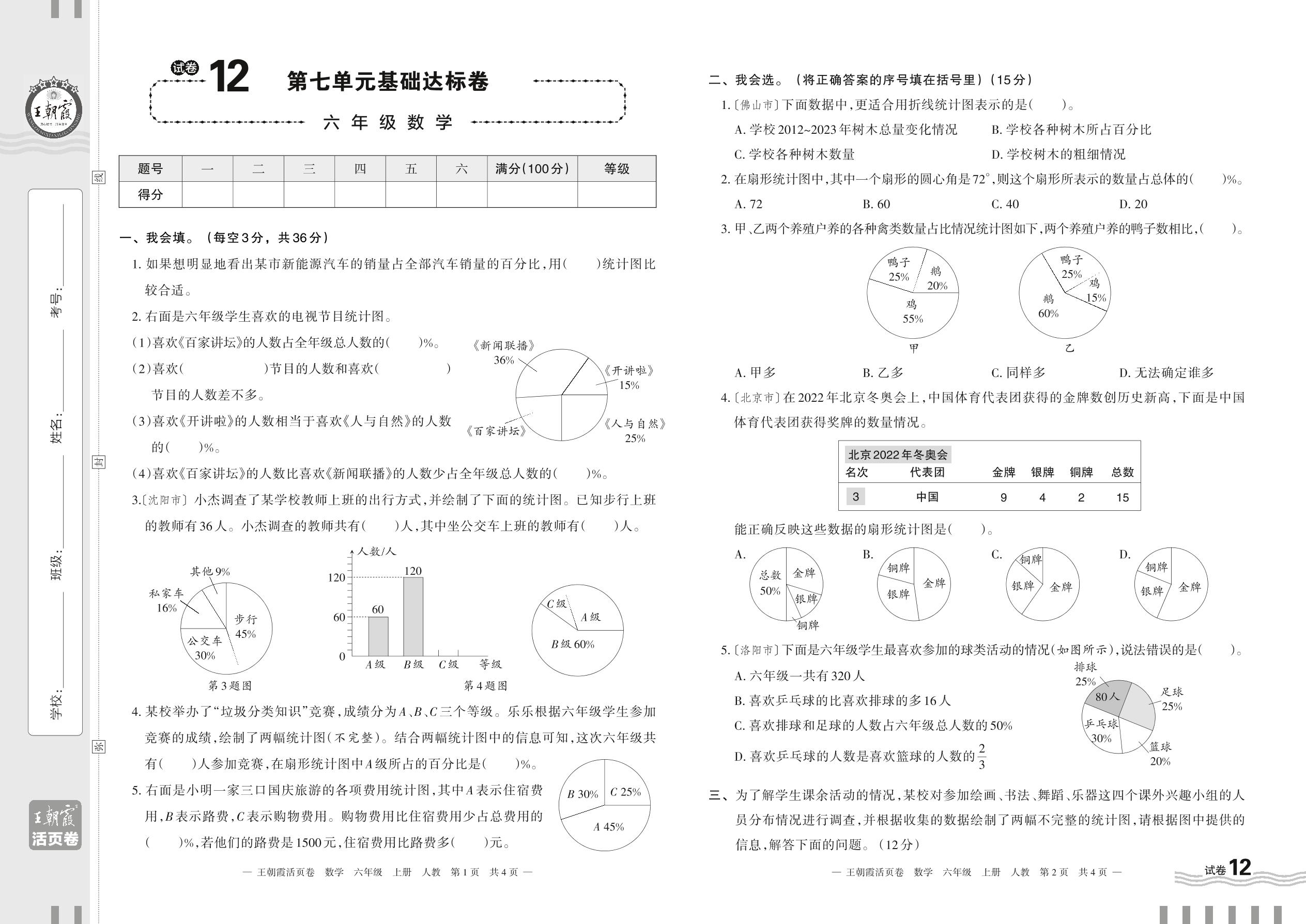 2023上册六年级数学人教版 试卷12 第七单元基础达标卷