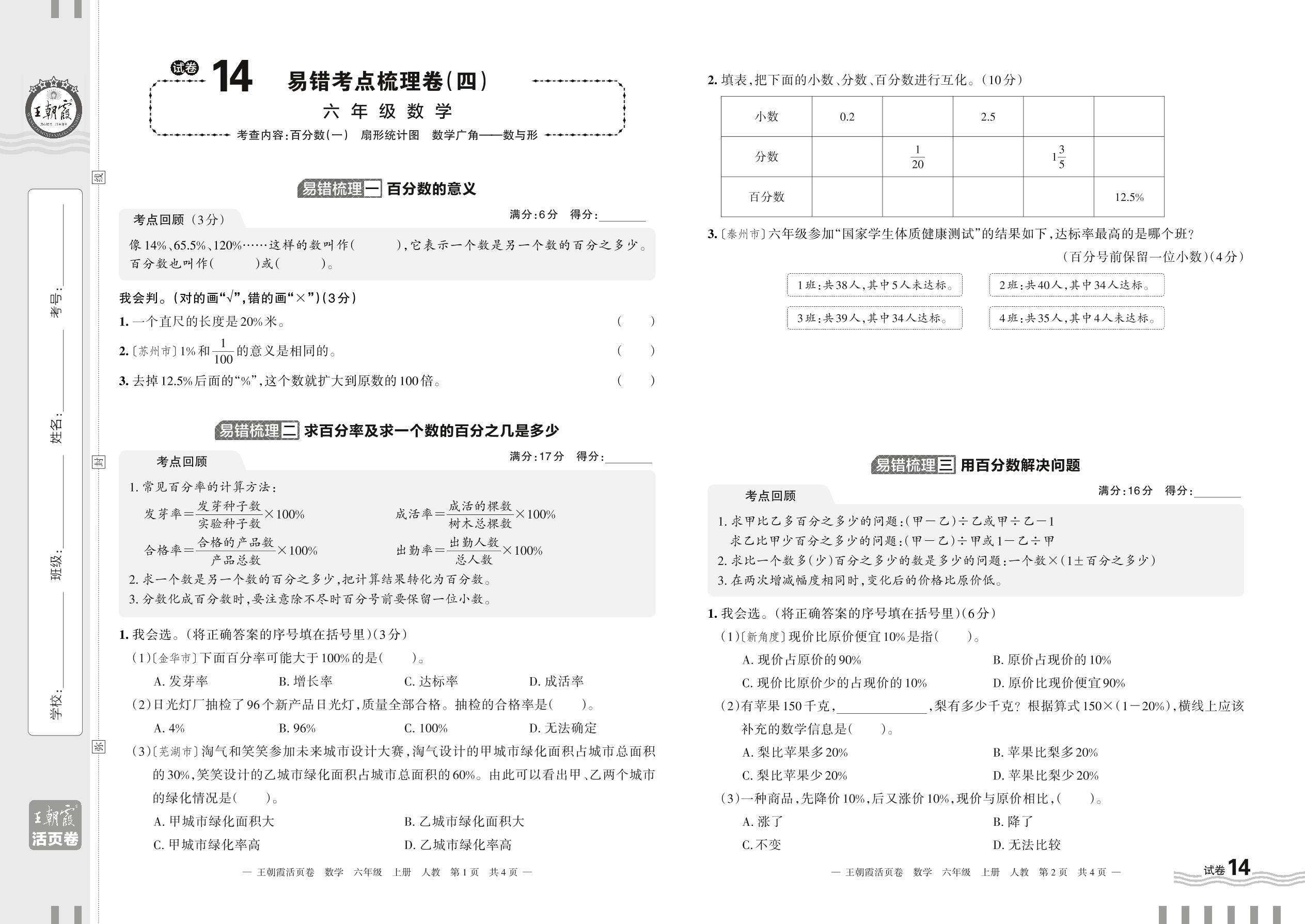 2023上册六年级数学人教版 试卷14 易错考点梳理卷(四)