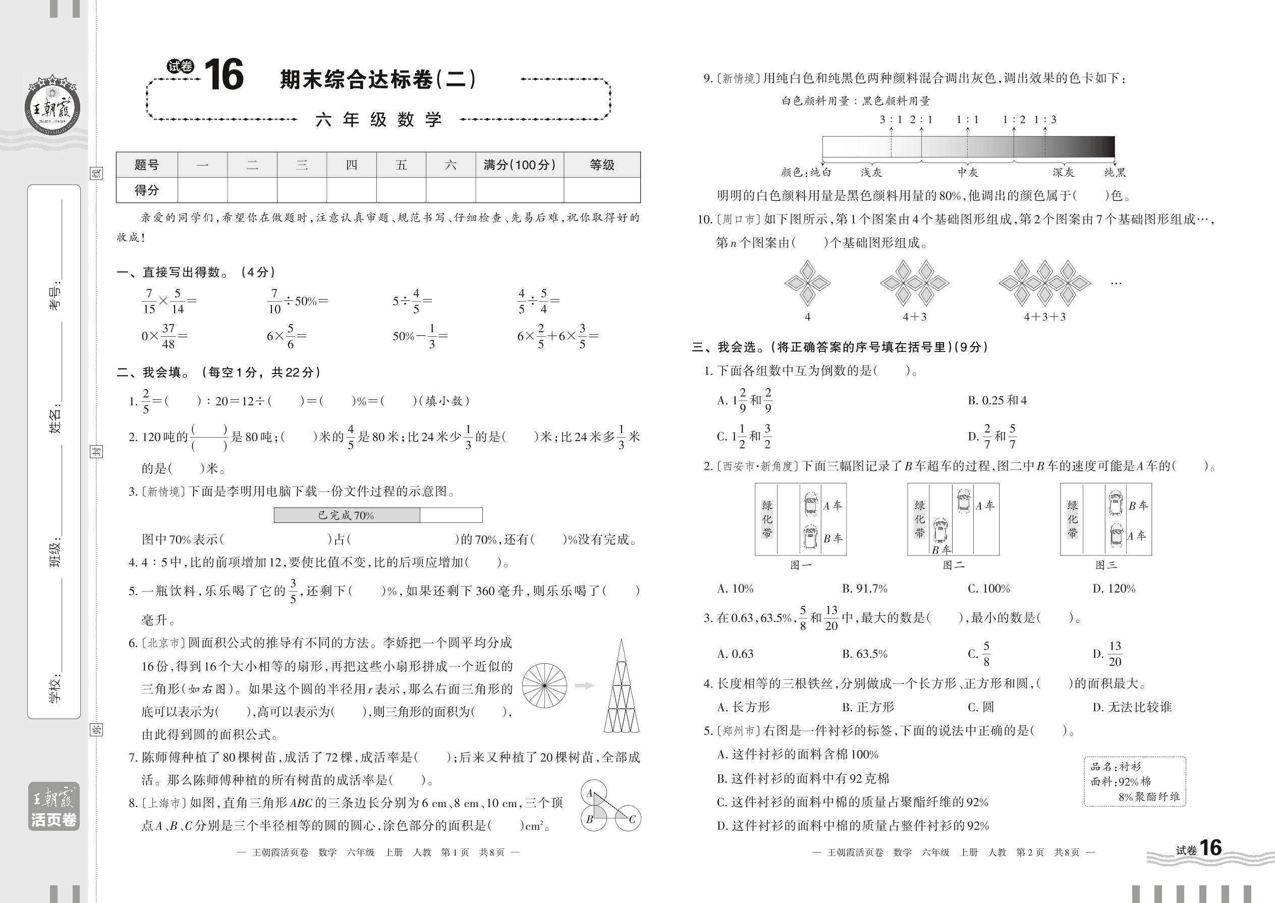 2023上册六年级数学人教版 试卷16 期末综合达标卷(二)