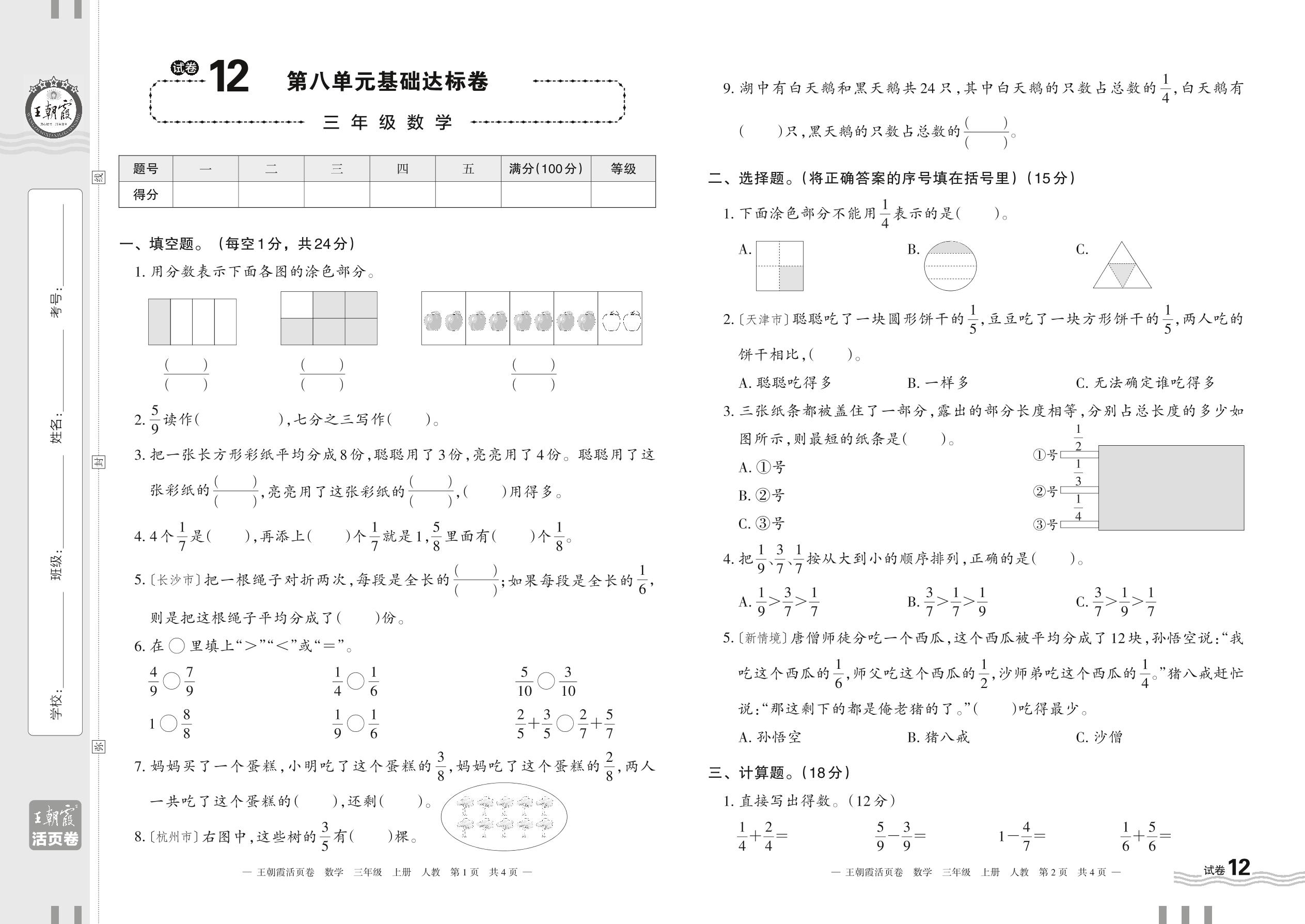 2023上册三年级数学人教版 试卷12 第八单元基础达标卷