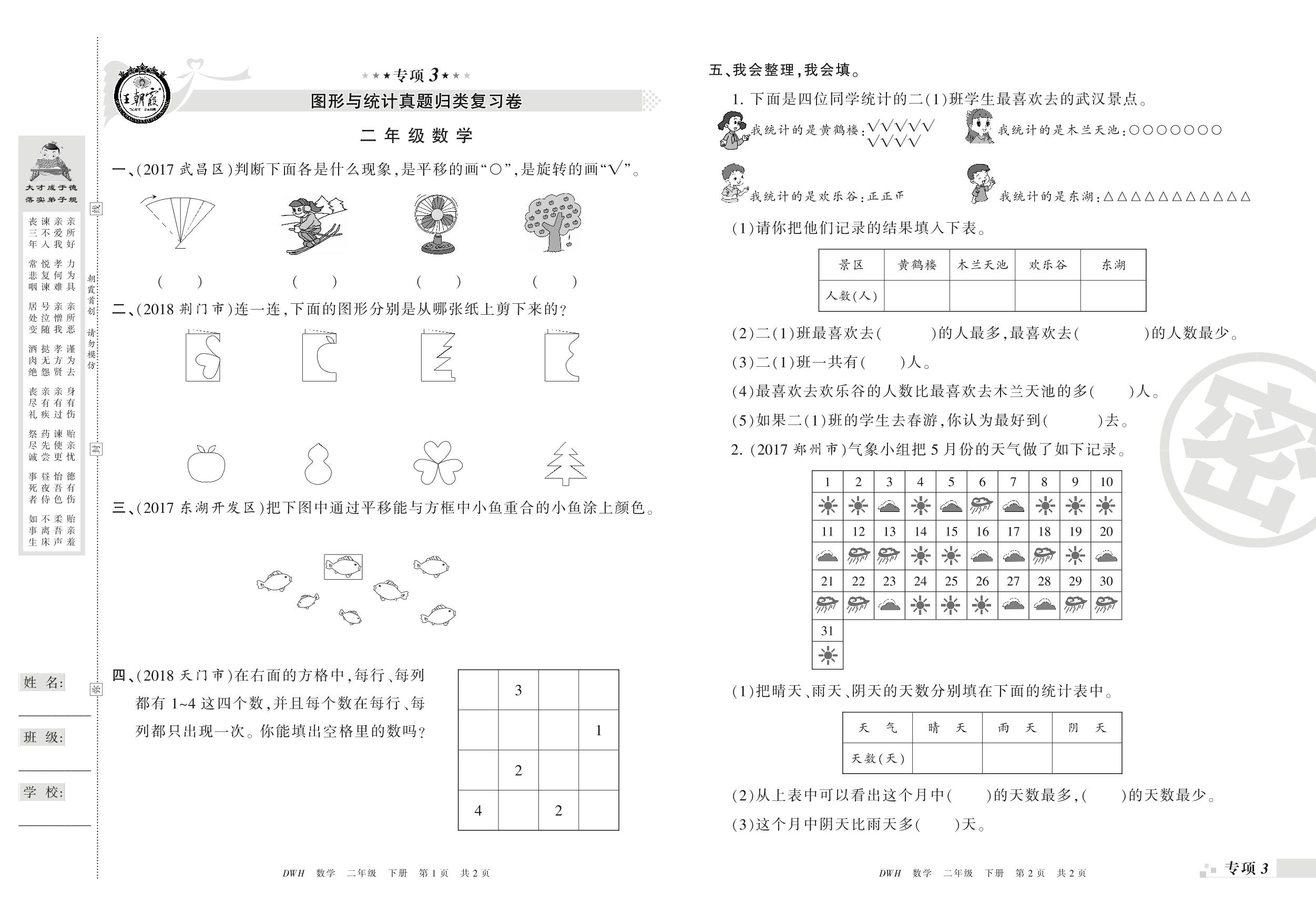 王朝霞期末专项卷——图形与统计、解决问题真题归类复习卷二年级下册数学(人教版)_R21080394406【0】