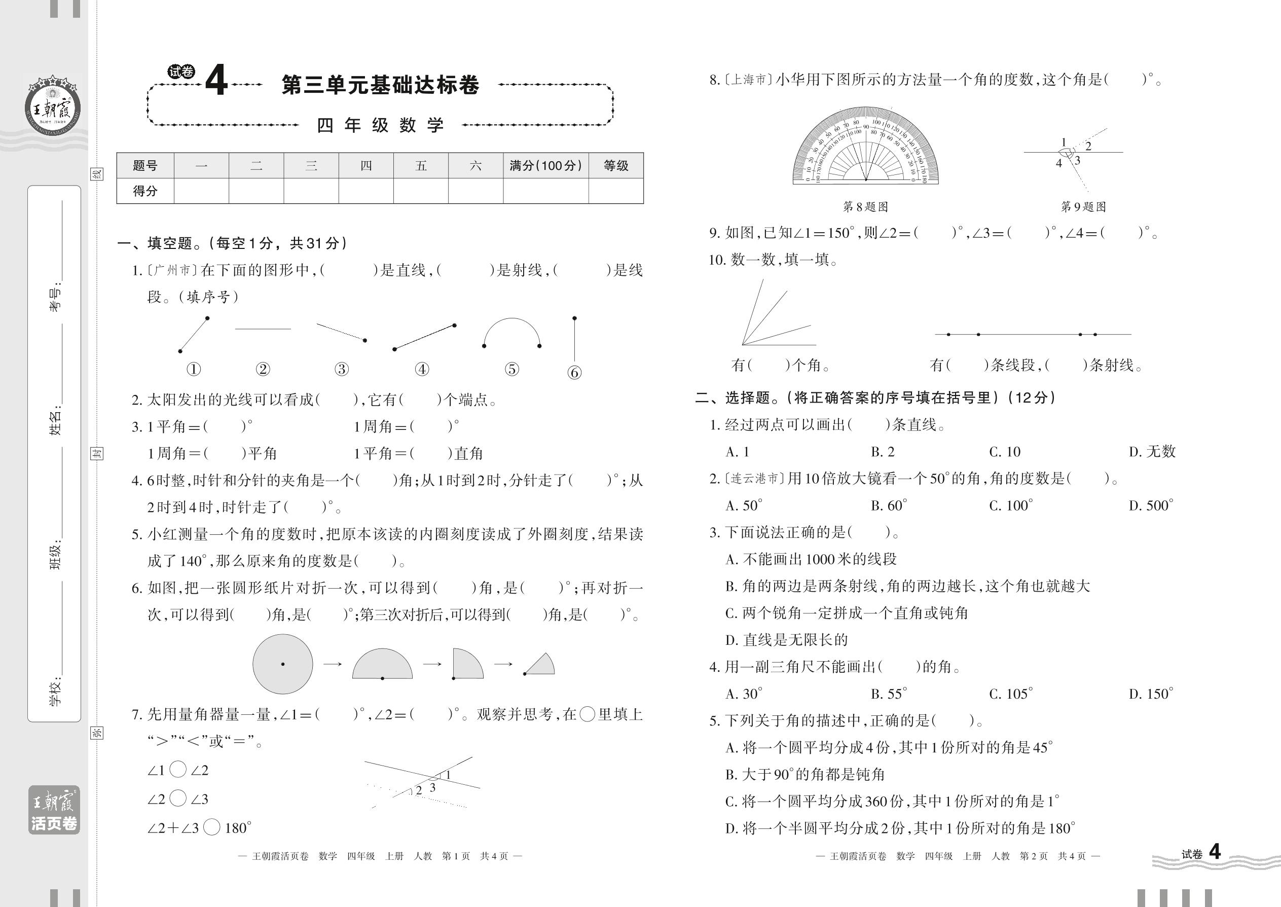 2023上册四年级数学人教版 试卷4 第三单元基础达标卷