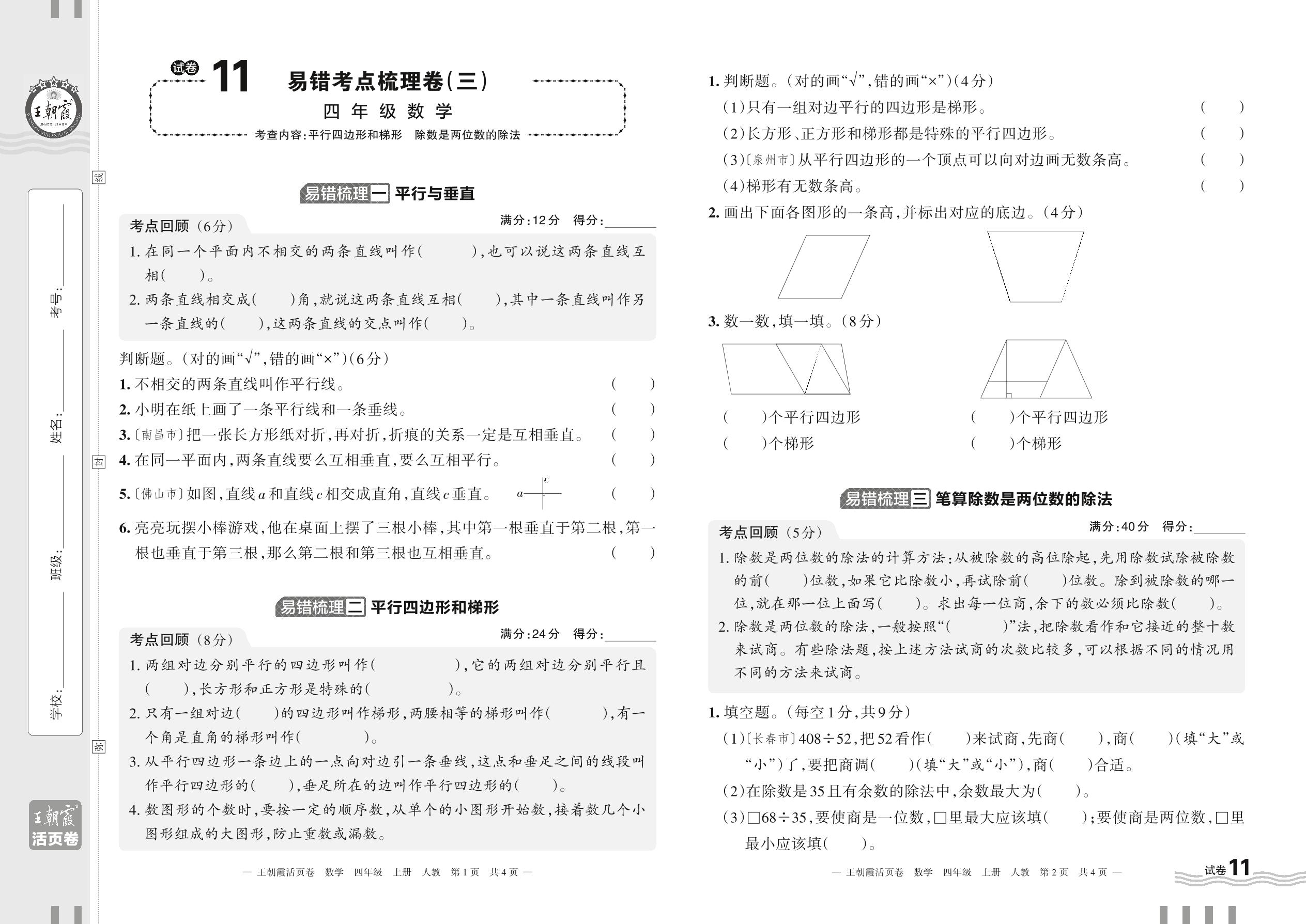 2023上册四年级数学人教版 试卷11 易错考点梳理卷(三)