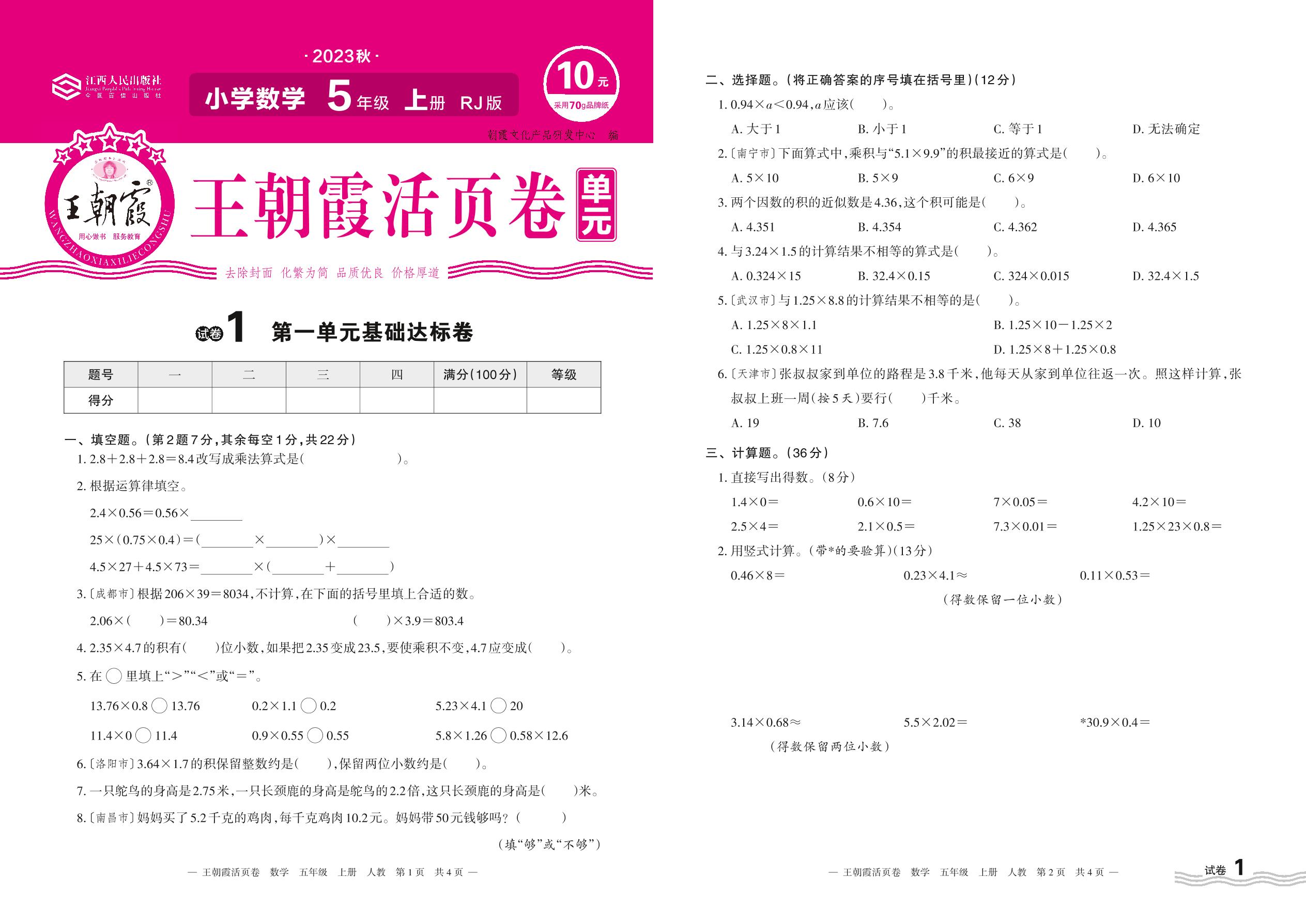 2023上册五年级数学人教版 试卷1 第一单元基础达标卷