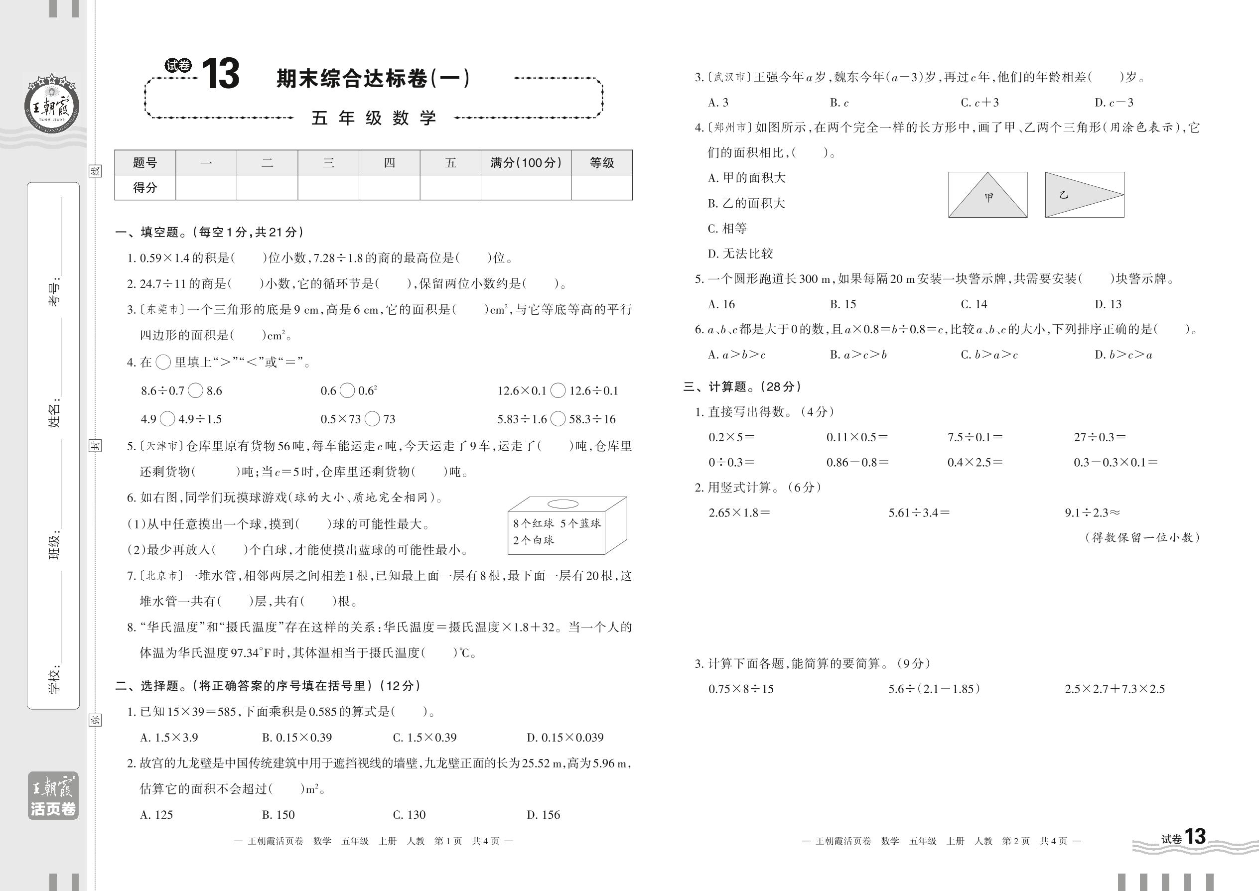 2023上册五年级数学人教版 试卷13 期末综合达标卷(一)