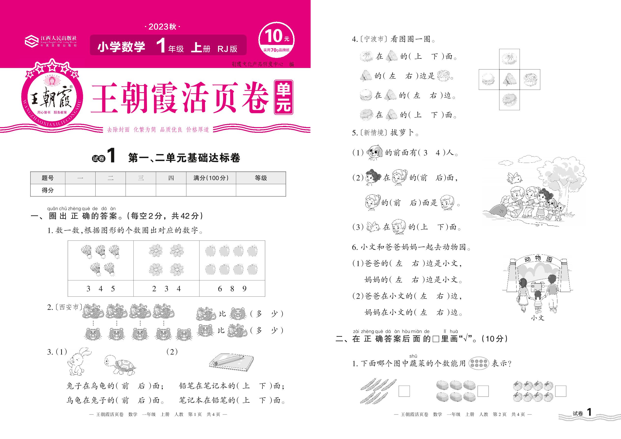 2023上册一年级数学人教版 试卷1 第一、二单元基础达标卷