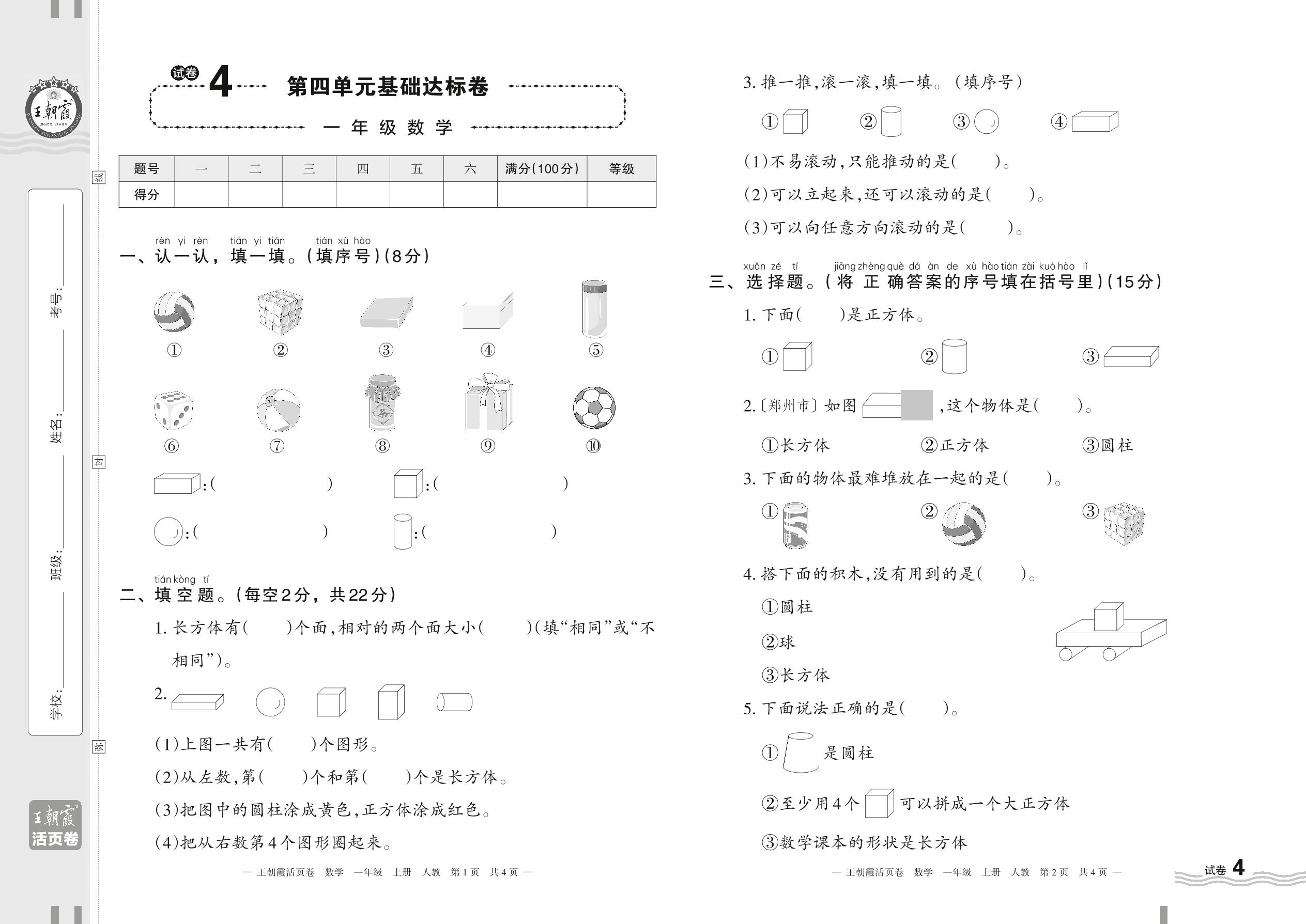 2023上册一年级数学人教版 试卷4 第四单元基础达标卷