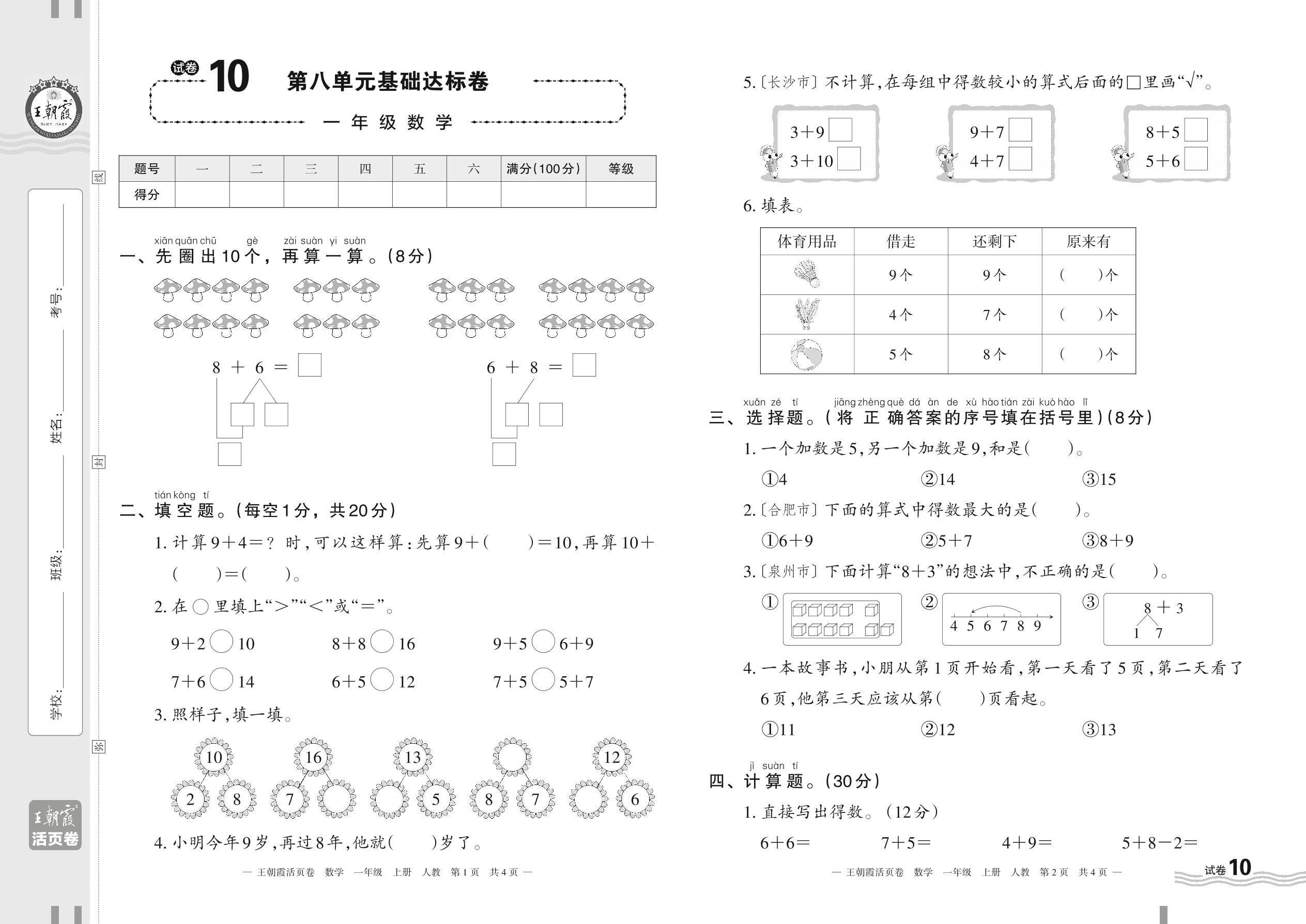 2023上册一年级数学人教版 试卷10 第八单元基础达标卷