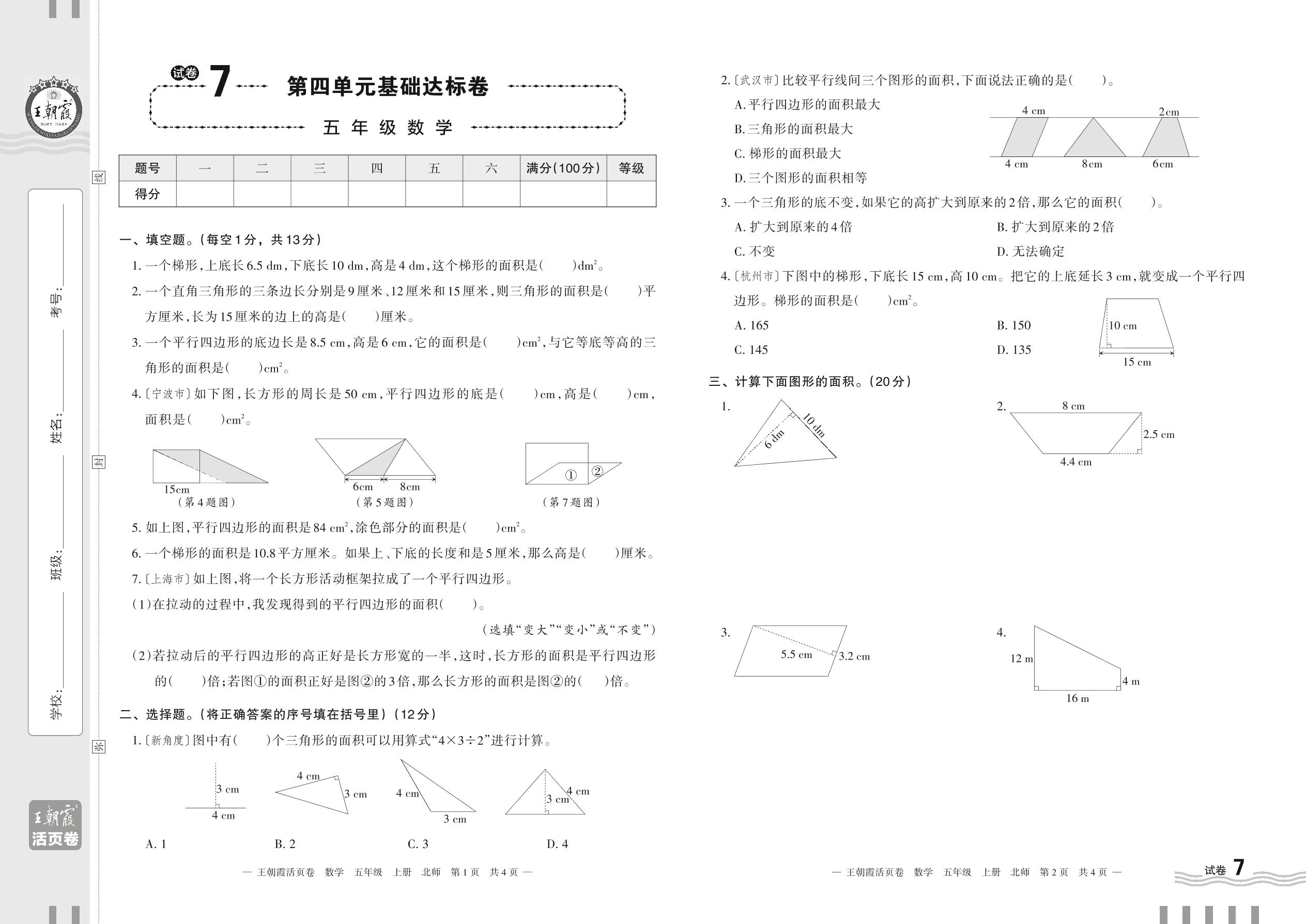 2023上册五年级数学北师版 试卷7 第四单元基础达标卷