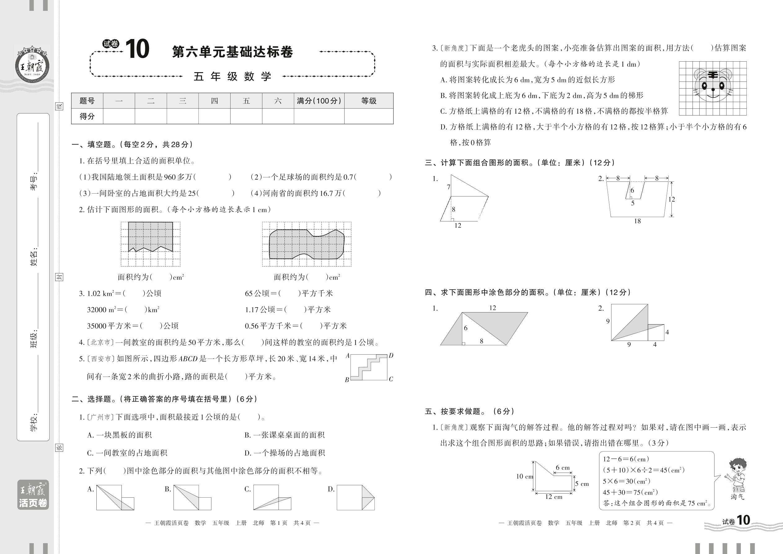 2023上册五年级数学北师版 试卷10 第六单元基础达标卷