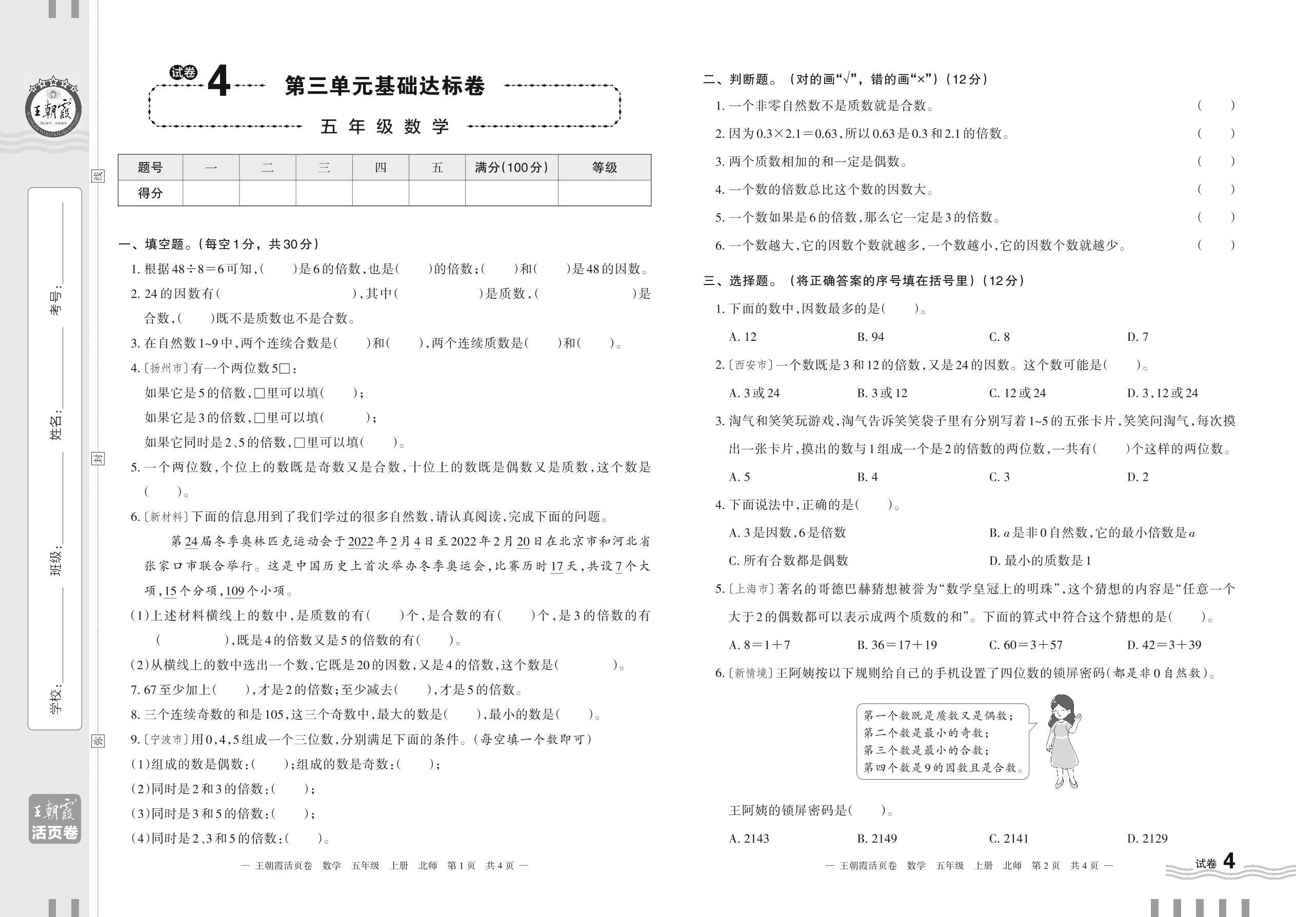2023上册五年级数学北师版 试卷4 第三单元基础达标卷