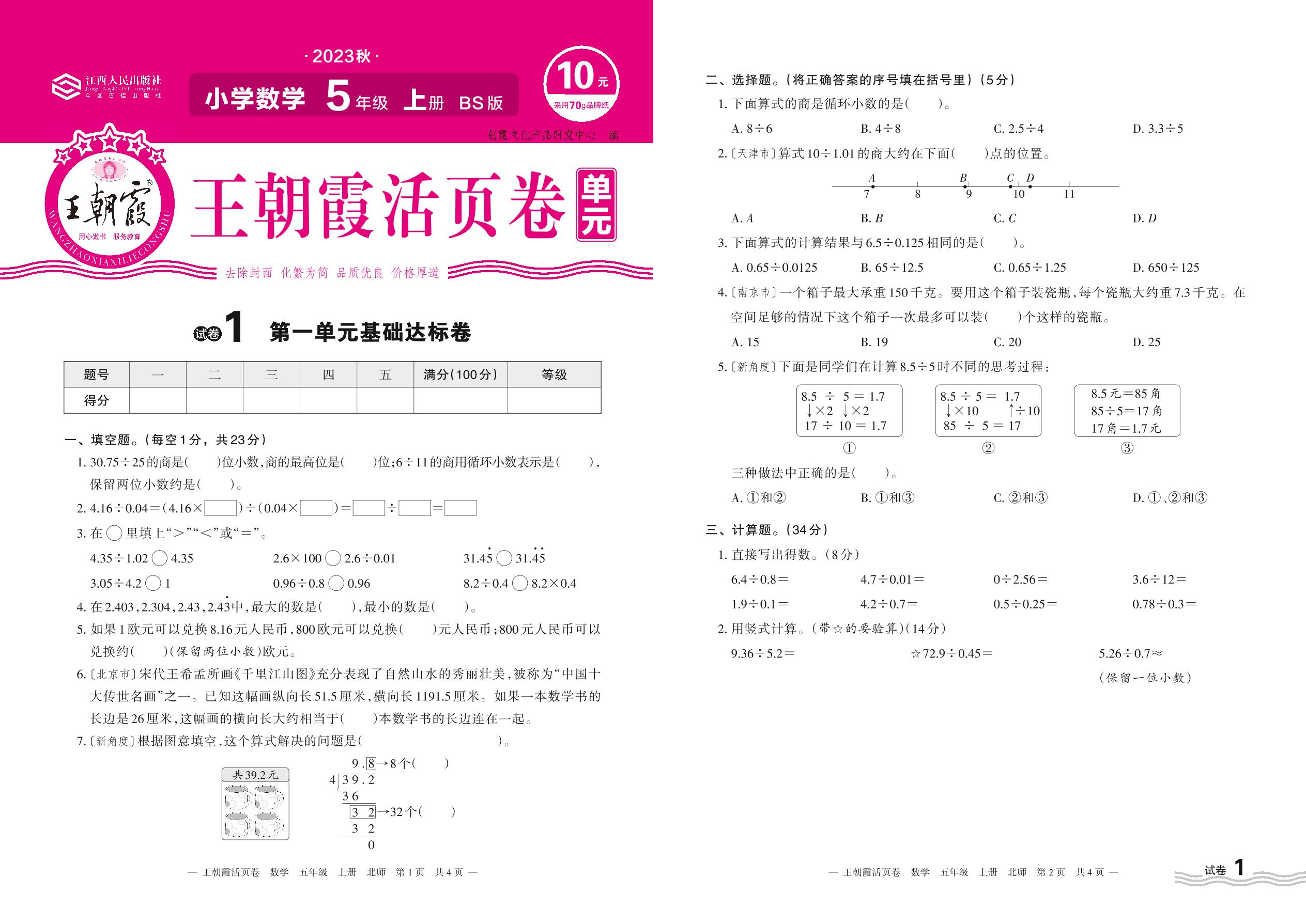 2023上册五年级数学北师版 试卷1 第一单元基础达标卷