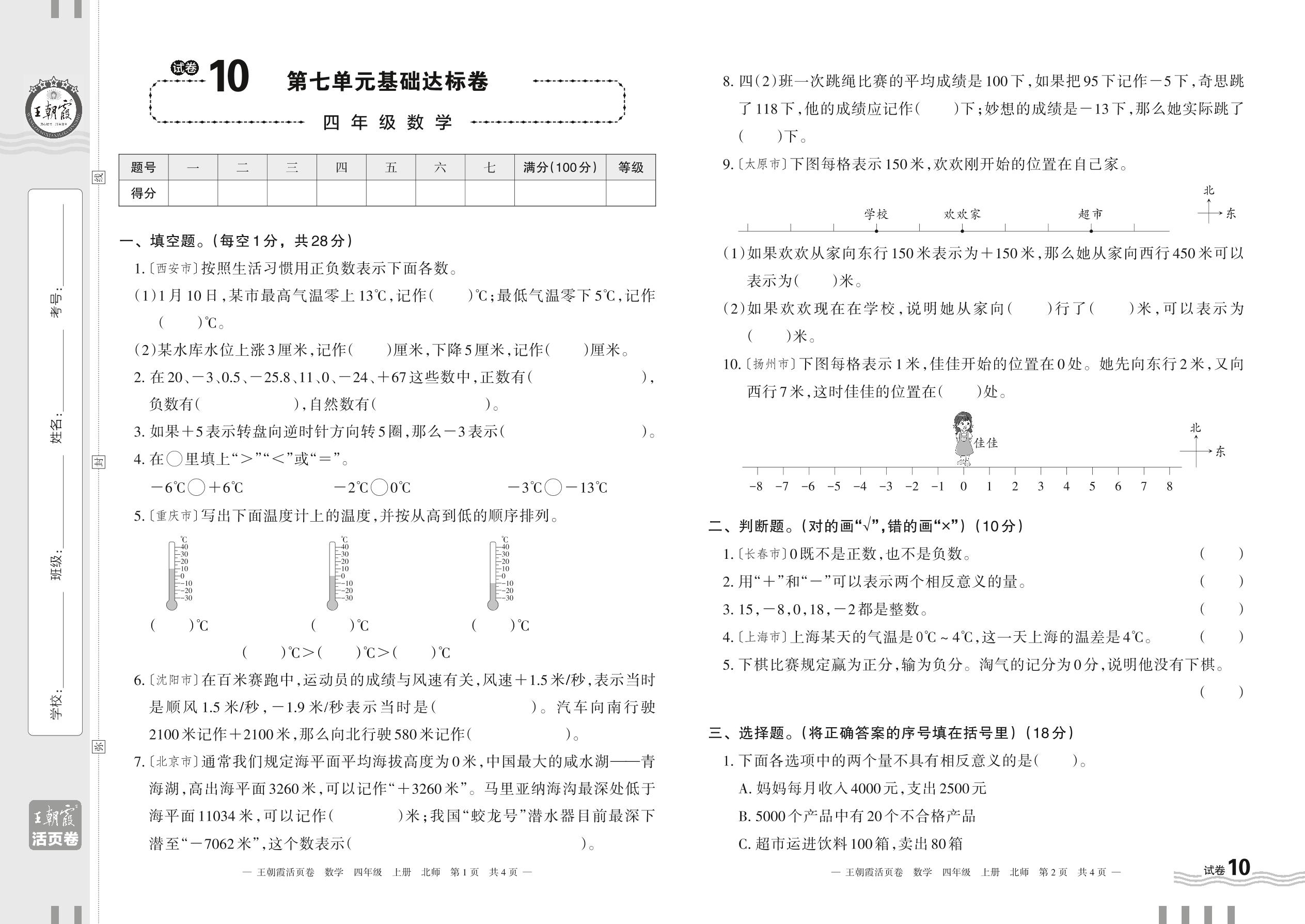2023上册四年级数学北师版 试卷10 第七单元基础达标卷