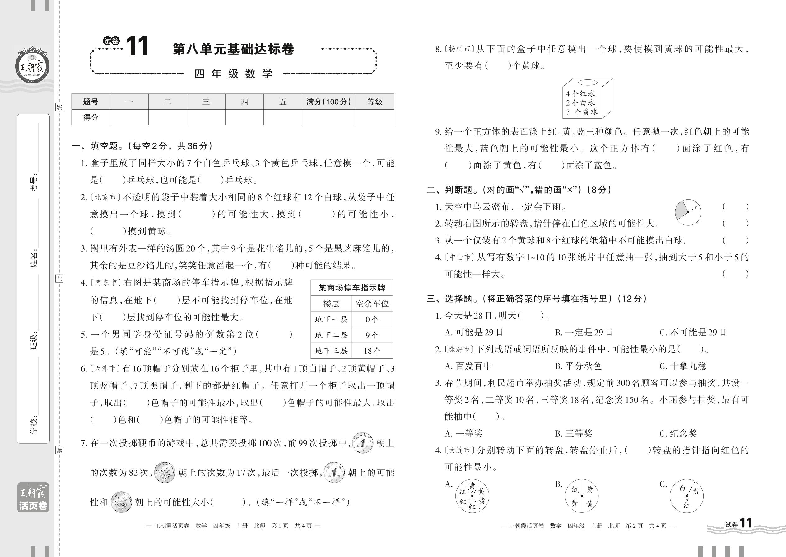 2023上册四年级数学北师版 试卷11 第八单元基础达标卷