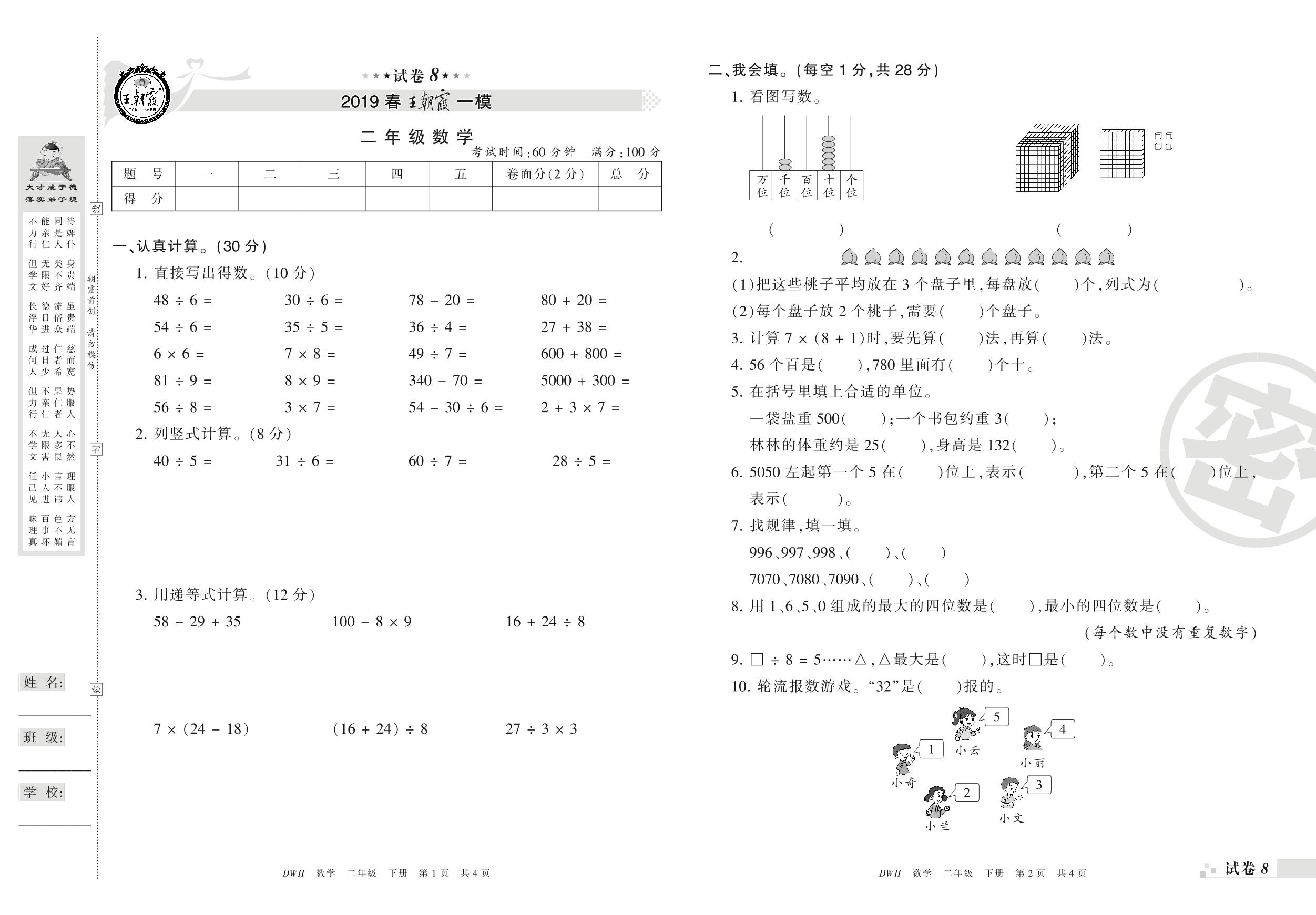 王朝霞期末模拟卷二年级下册数学(人教版)_R21080394434【8】