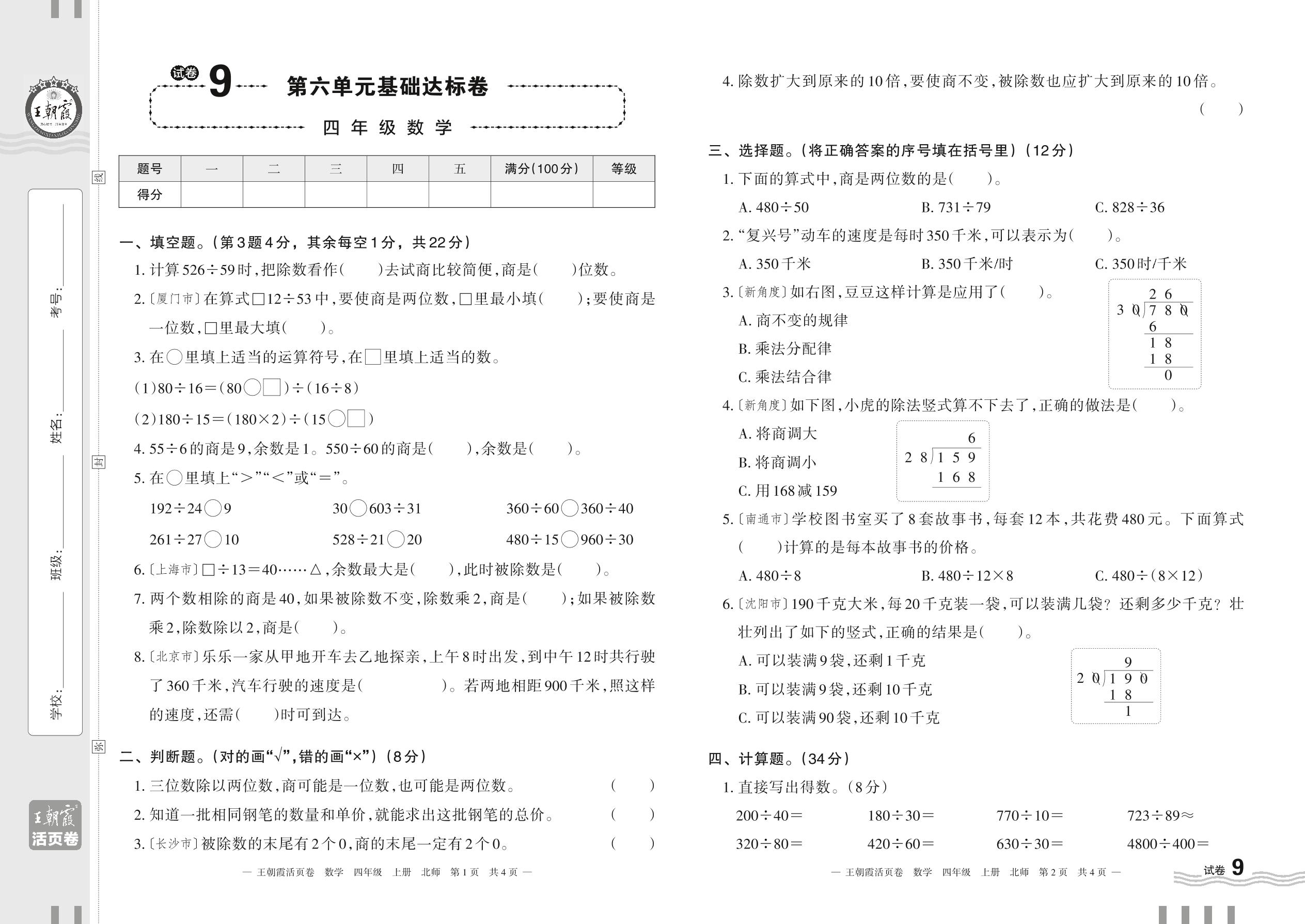 2023上册四年级数学北师版 试卷9 第六单元基础达标卷