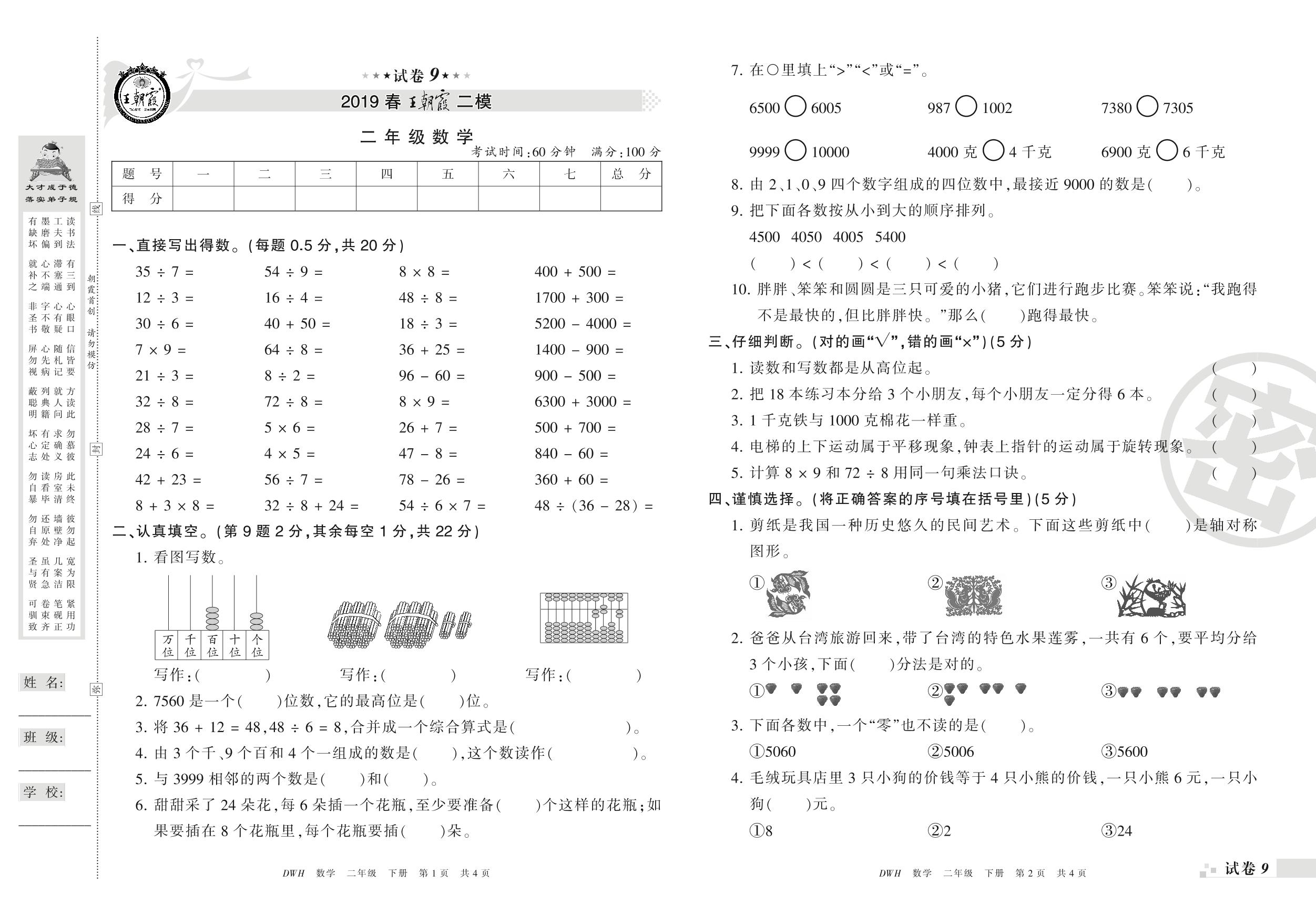 王朝霞期末模拟卷二年级下册数学(人教版)_R21080394438【9】