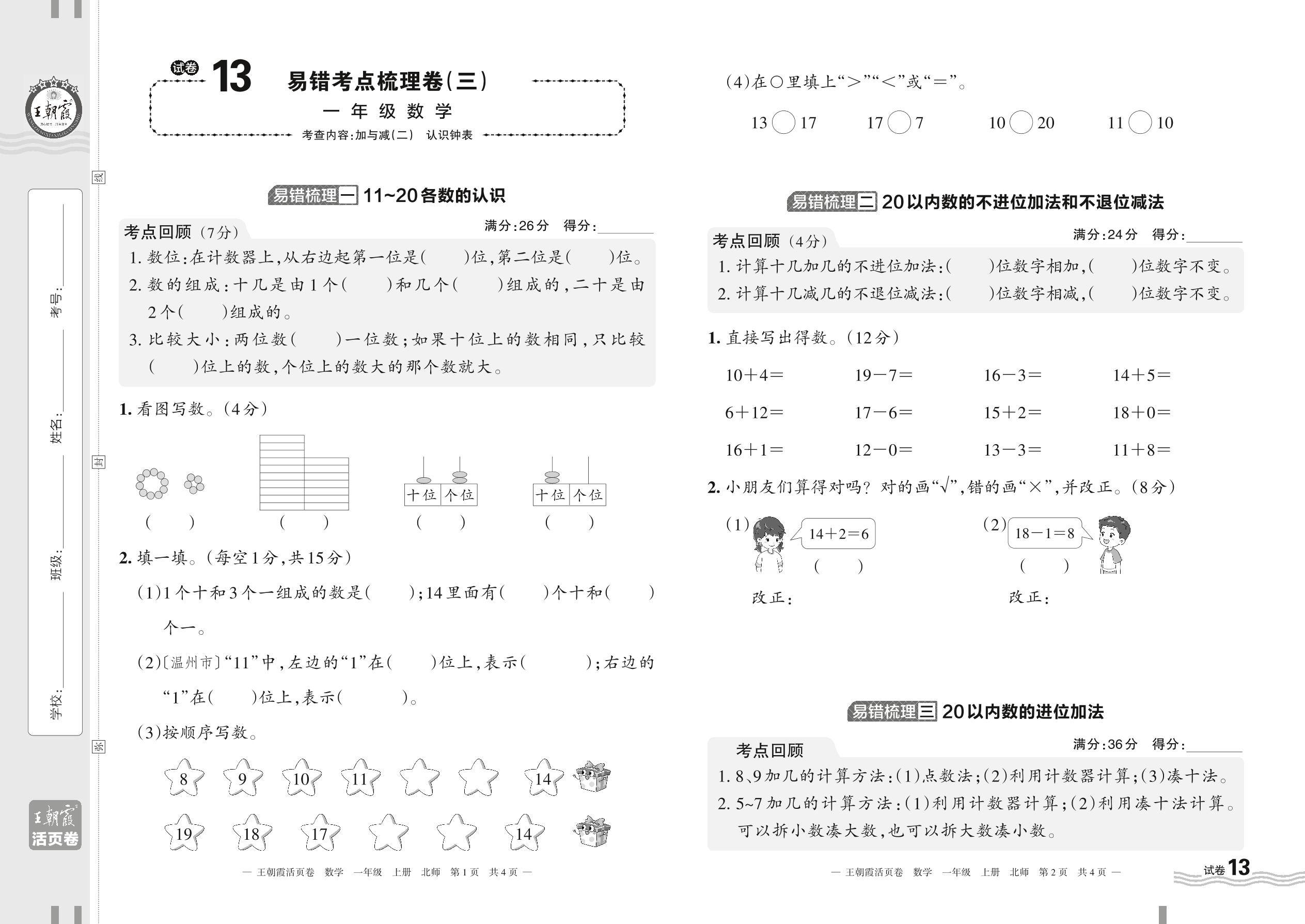 2023上册一年级数学北师版 试卷13 易错考点梳理卷(三)
