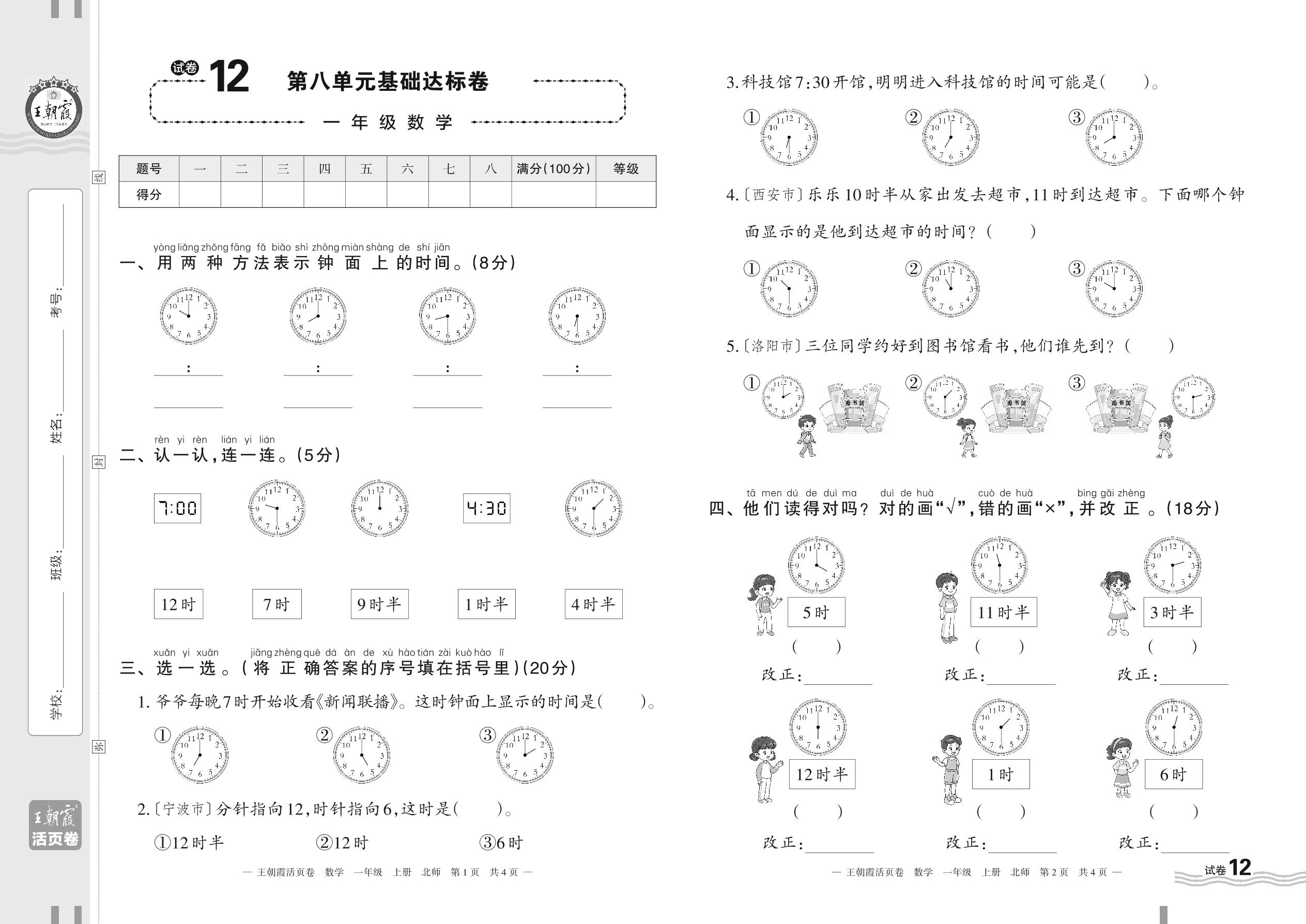 2023上册一年级数学北师版 试卷12 第八单元基础达标卷