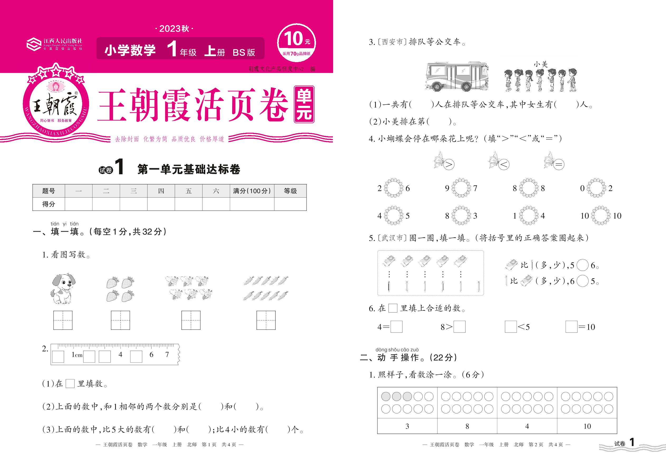 2023上册一年级数学北师版 试卷1 第一单元基础达标卷