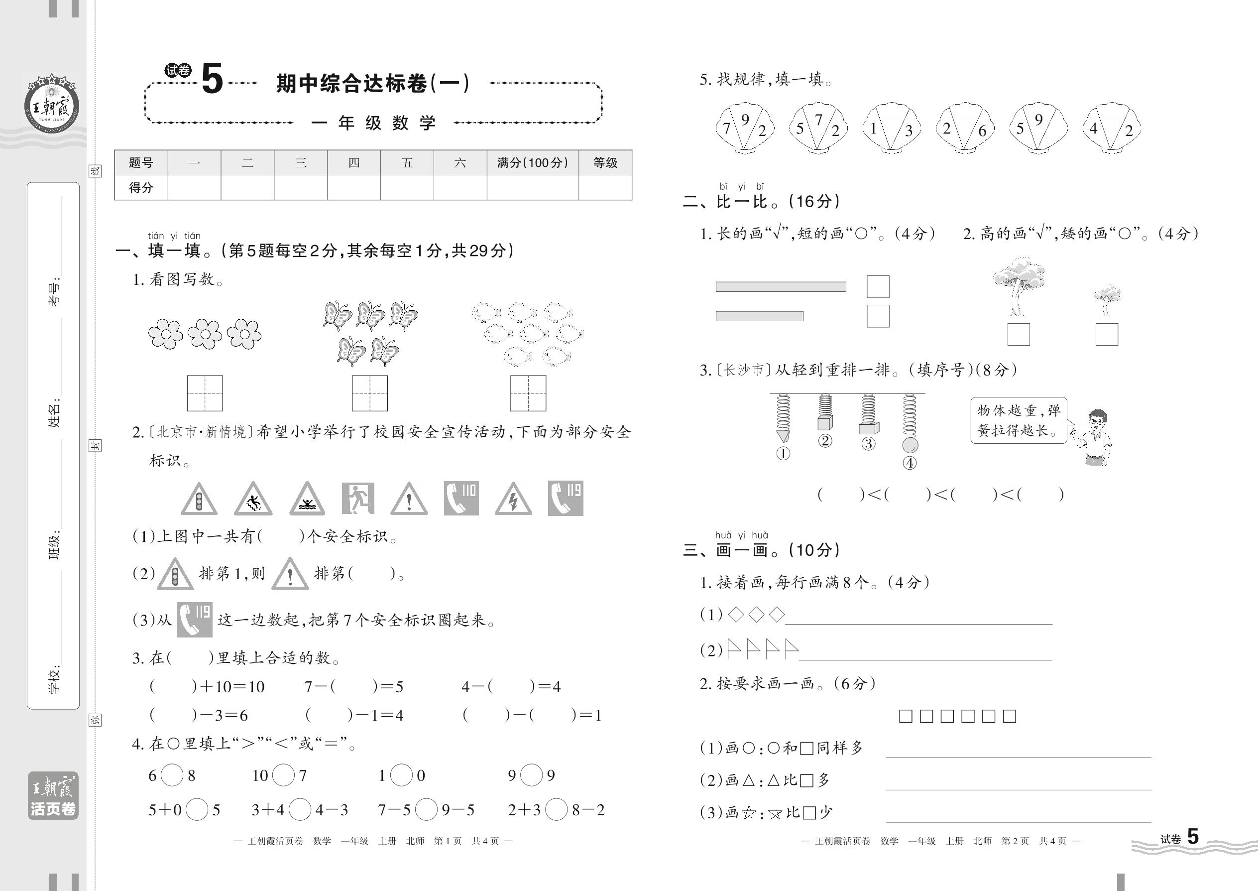 2023上册一年级数学北师版 试卷5 期中综合达标卷(一)