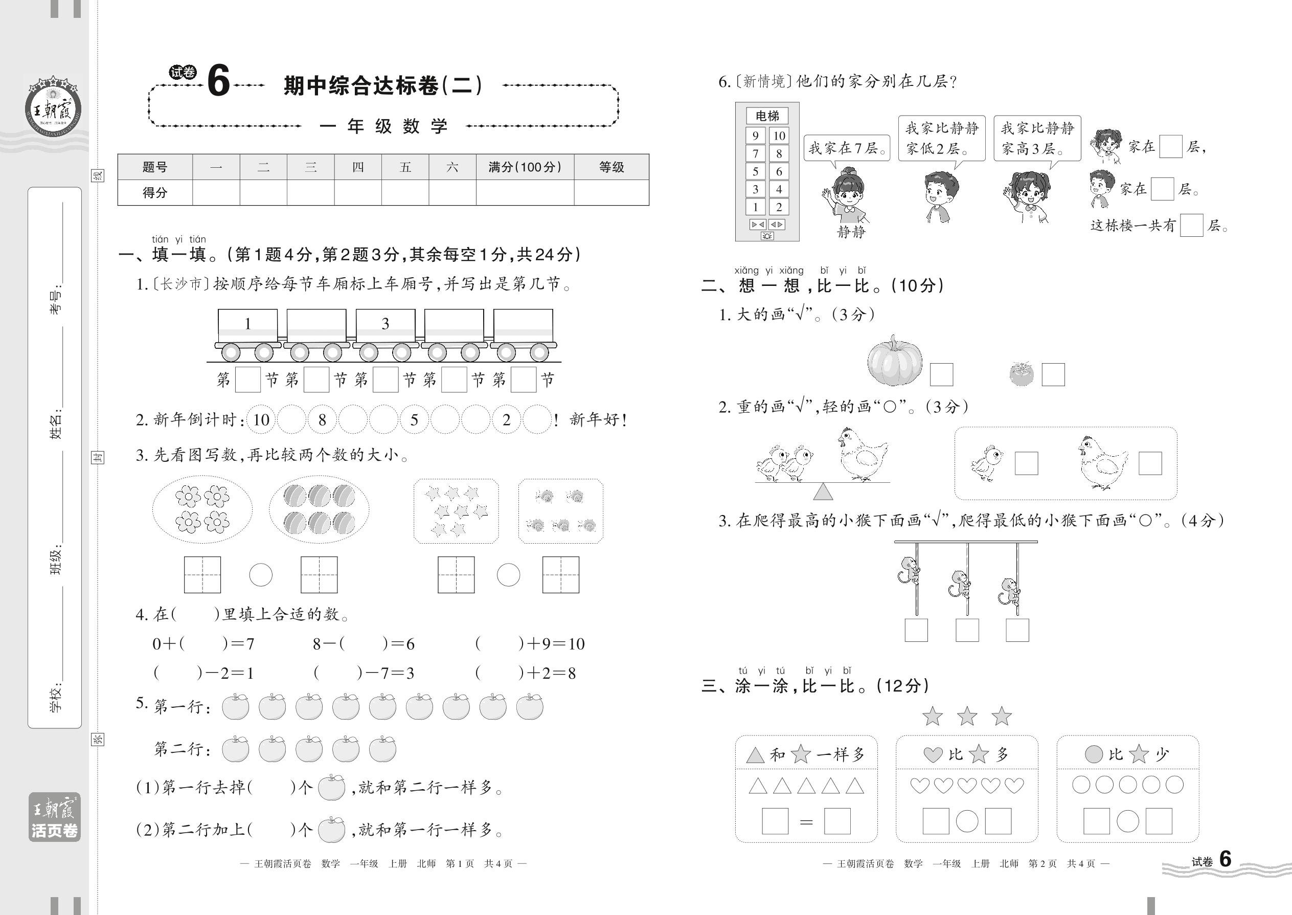 2023上册一年级数学北师版 试卷6 期中综合达标卷(二)