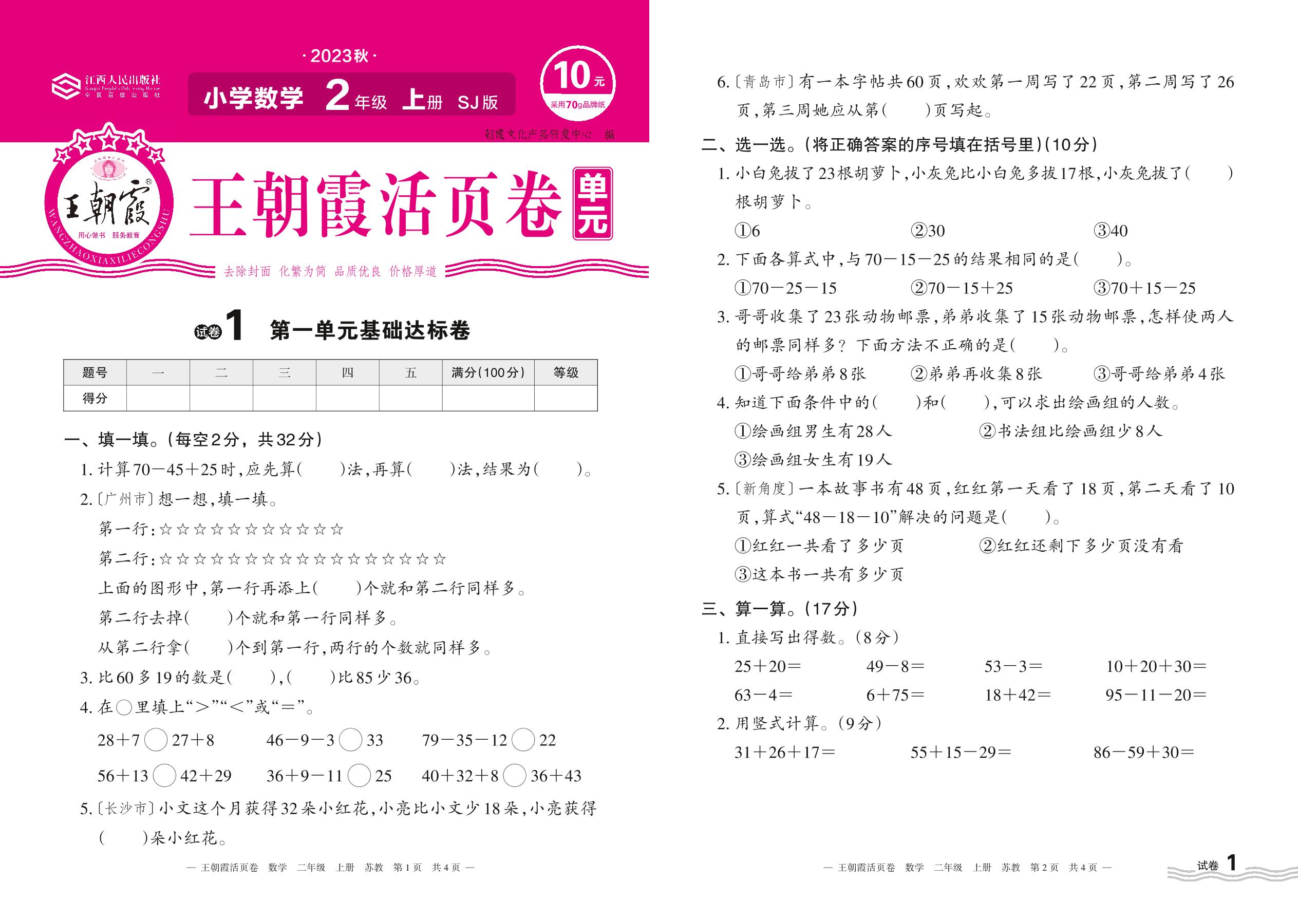 2023上册二年级数学苏教版 试卷1 第一单元基础达标卷