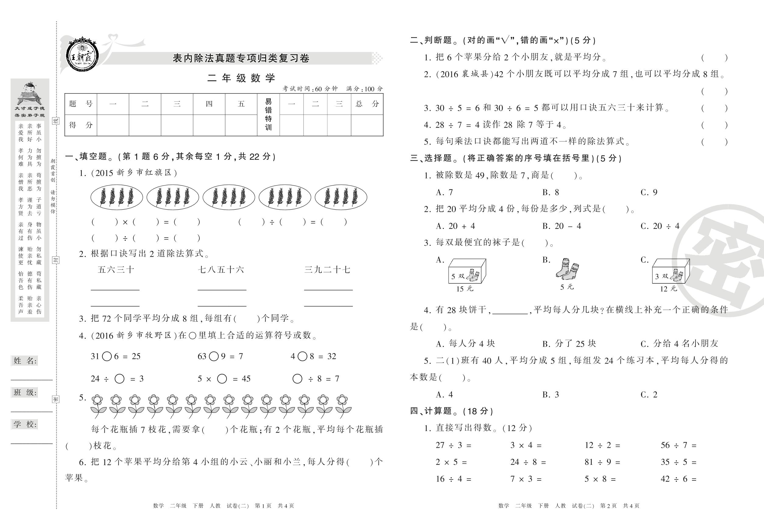 王朝霞期末专项卷二年级下册数学(人教版)_R21080394448【2】