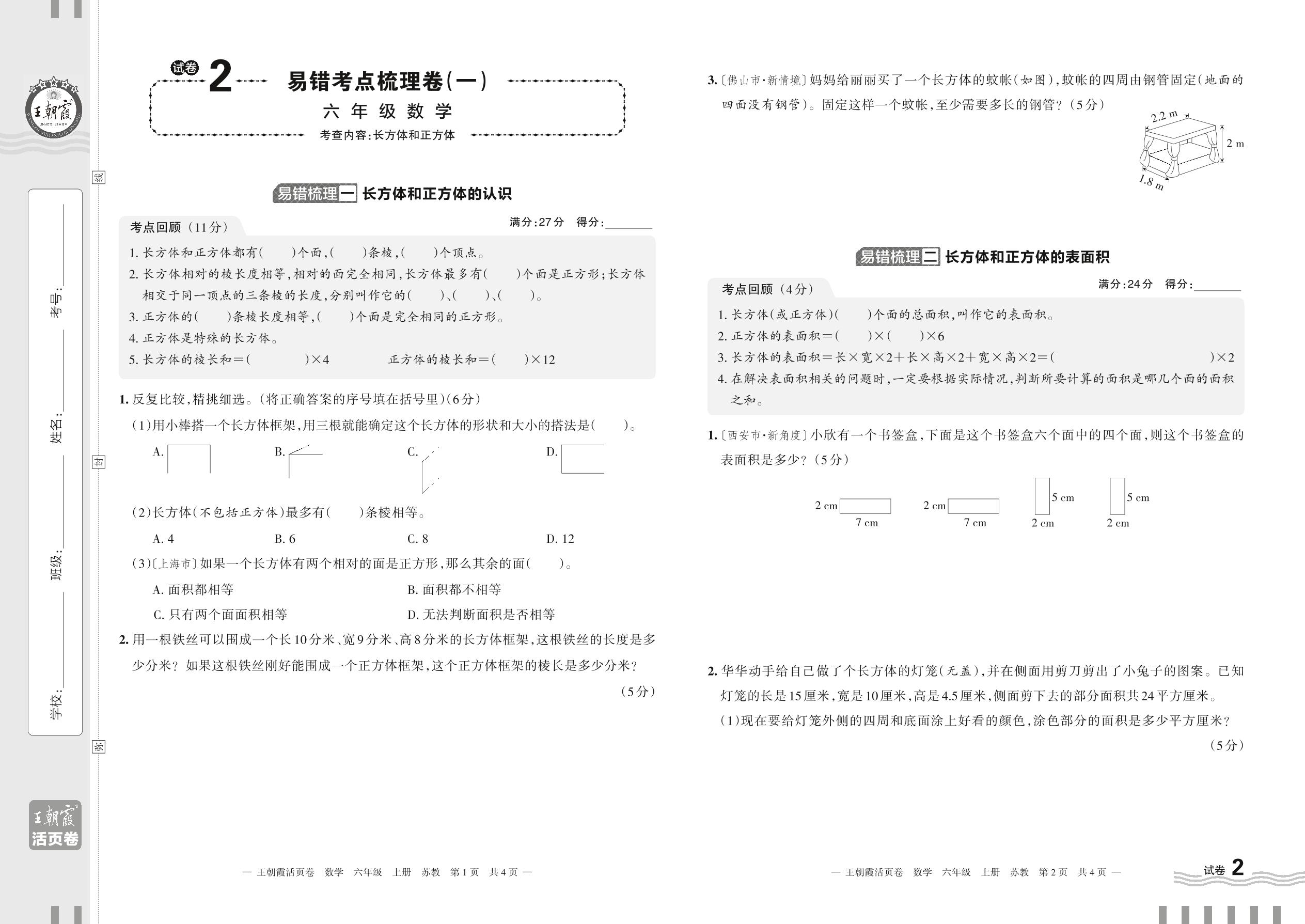 2023上册六年级数学苏教版 试卷2 易错考点梳理卷(一)